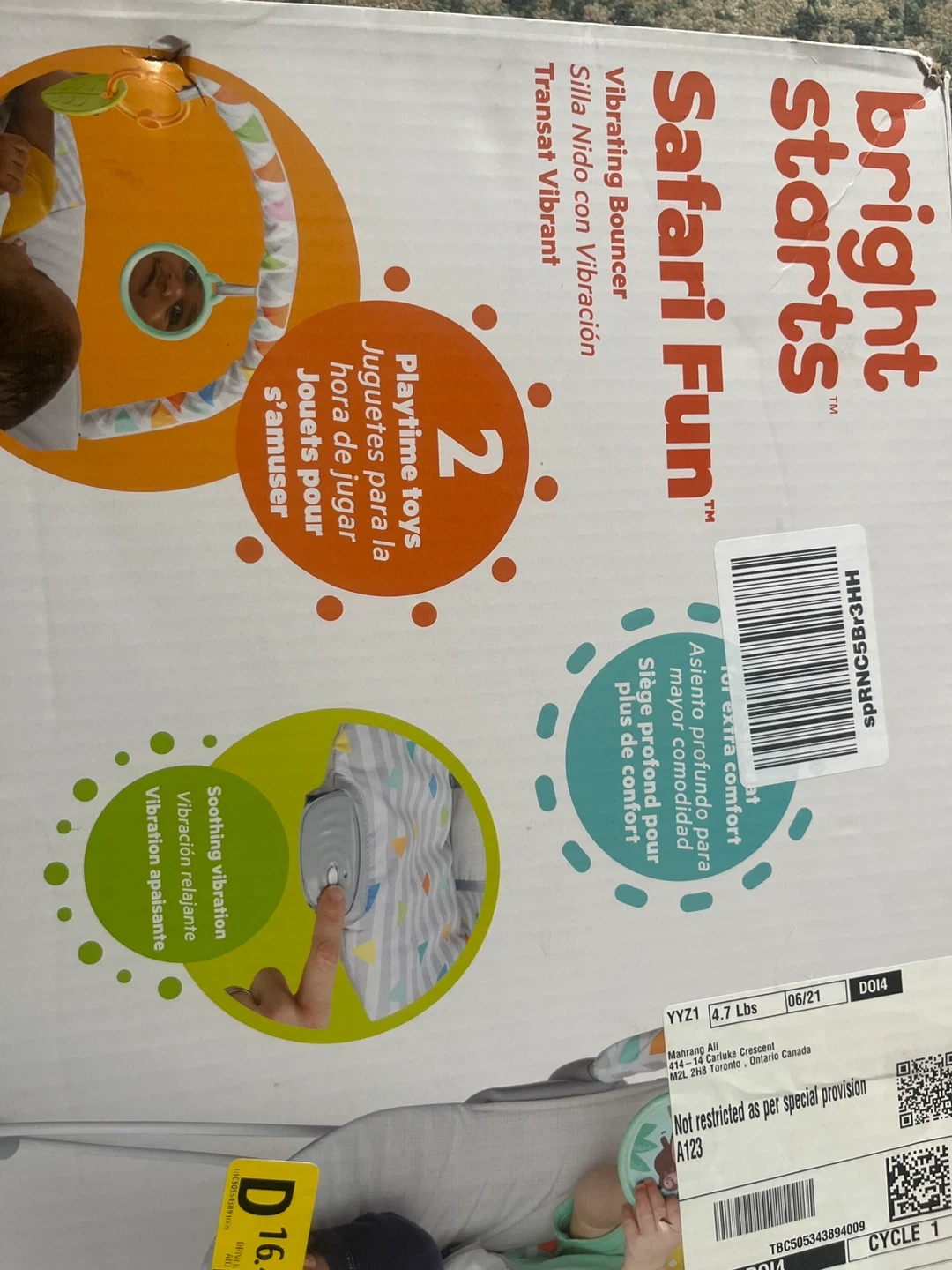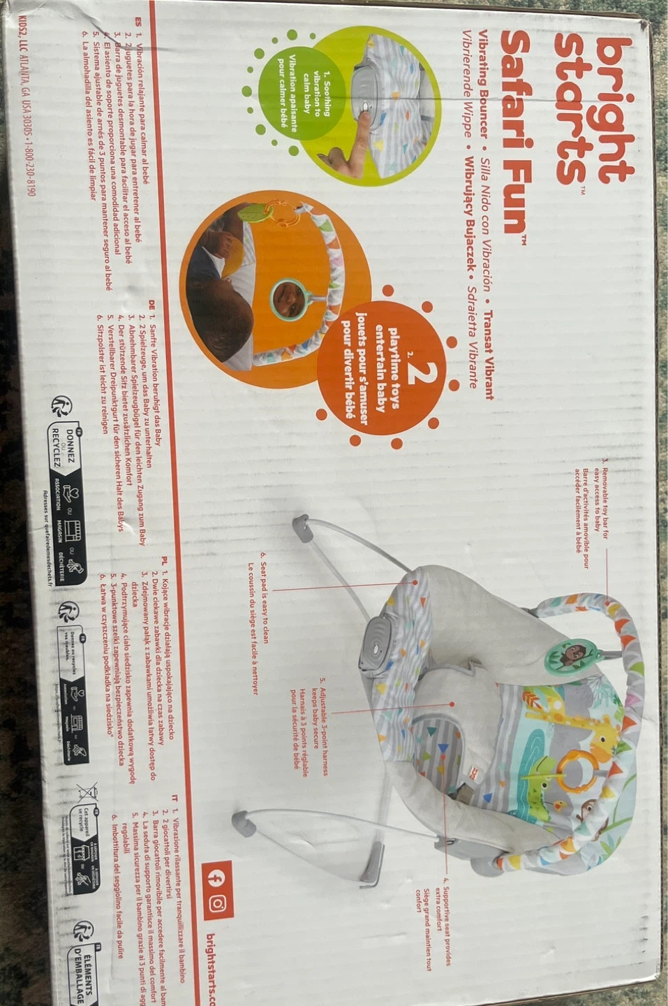 10Bright starts safari fun vibrating bouncer Smoothing vibration to calm baby and playtime to entertain baby