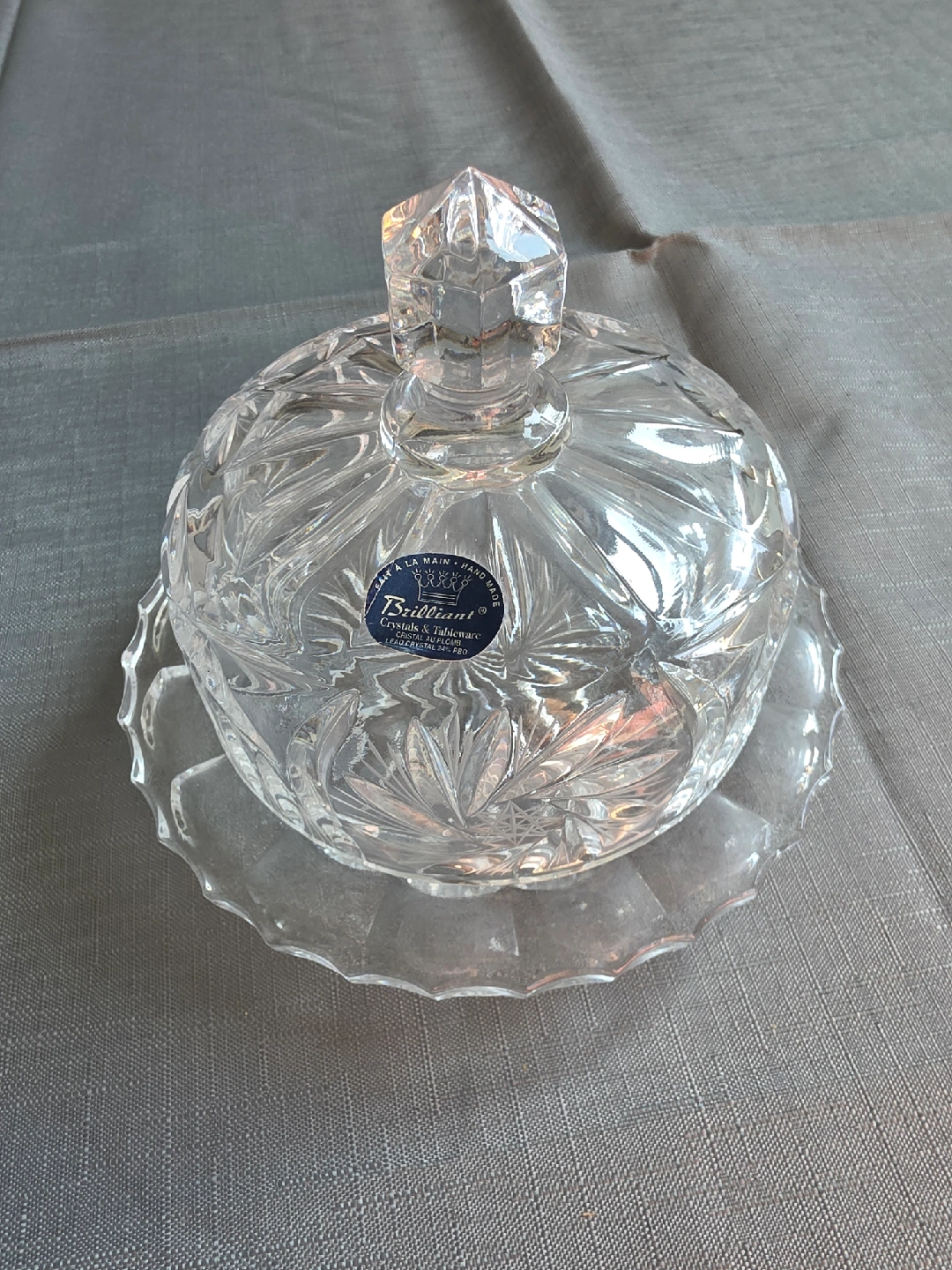 Selling a beautiful Brilliant crystal butter dish with a lid. It's in excellent condition and ready to add a touch of elegance to your table! #12