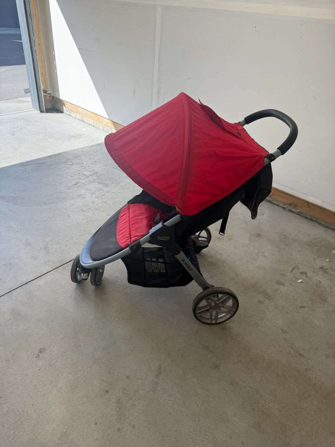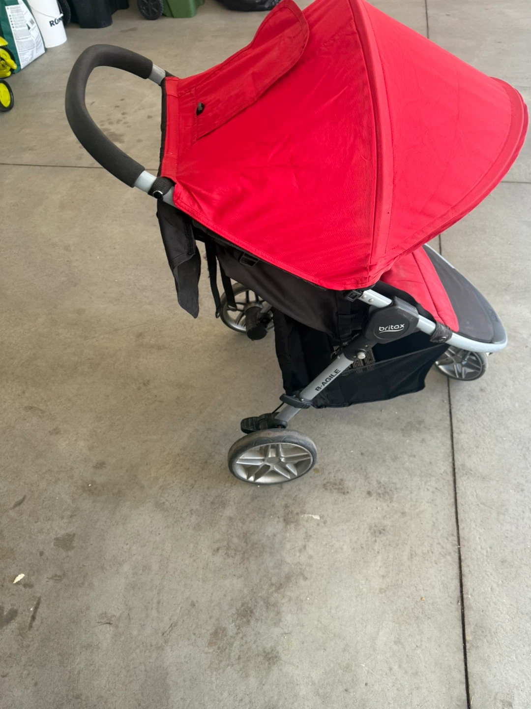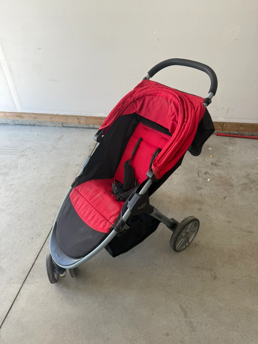 Selling a Britax B-Agile stroller in red and black. It's in good condition and ready for a new home. Perfect for walks around the neighbourhood!