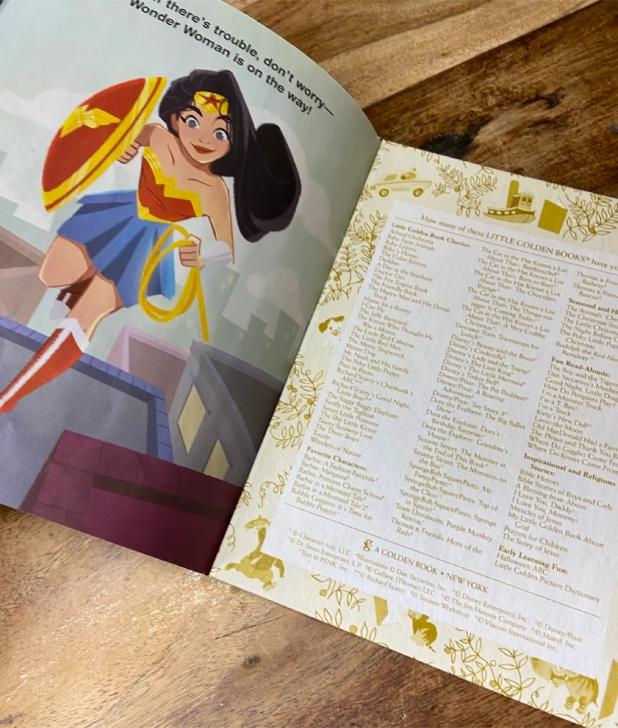 A Little Golden Book featuring Wonder Woman. This children's book is great for young readers and fans of superheroes. It's part of a beloved series of timeless stories.
