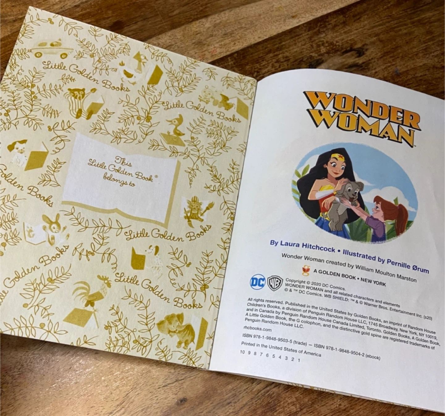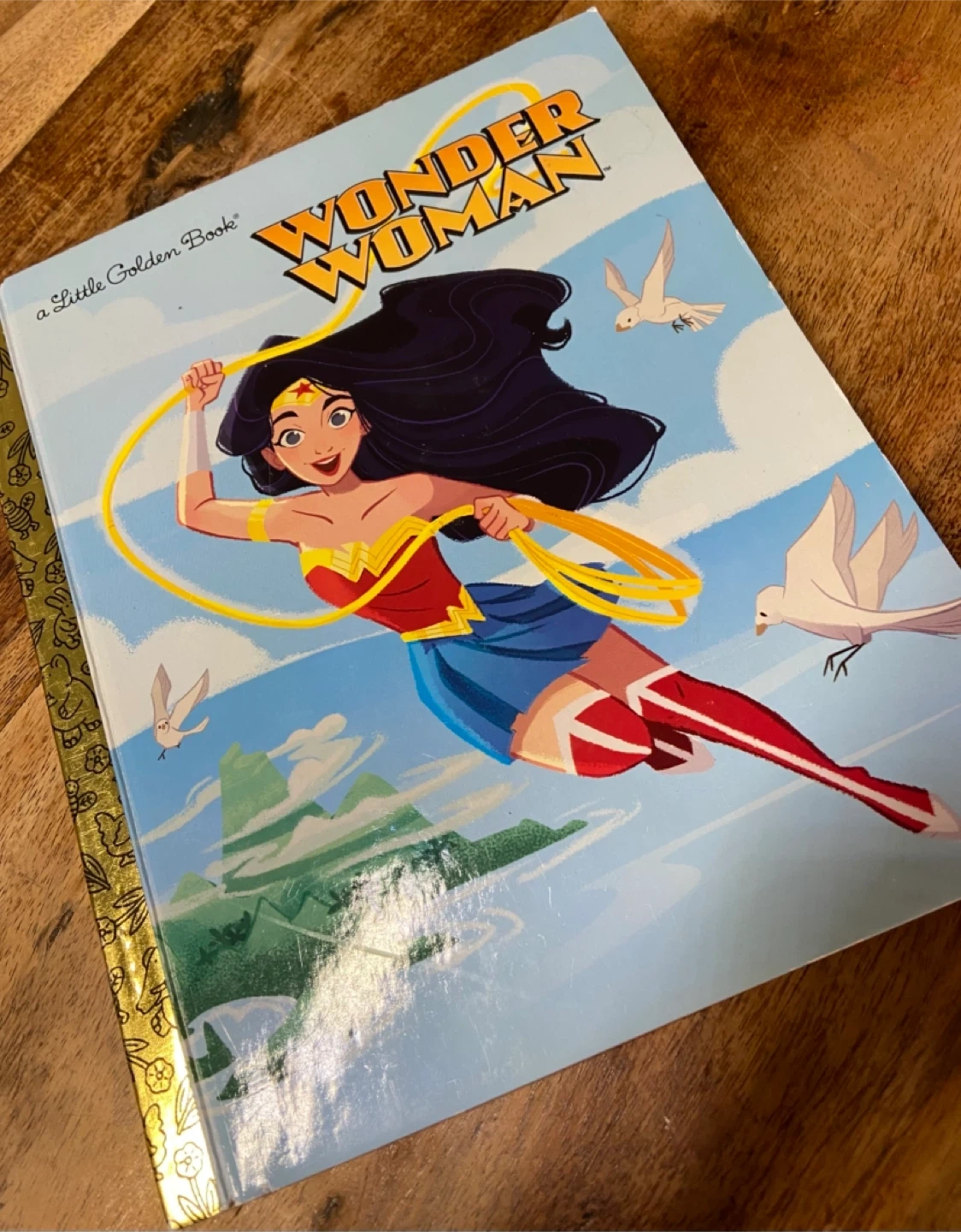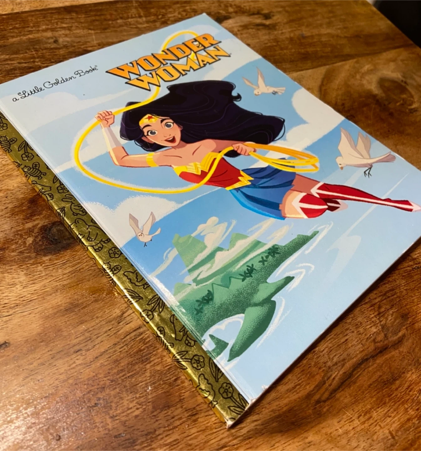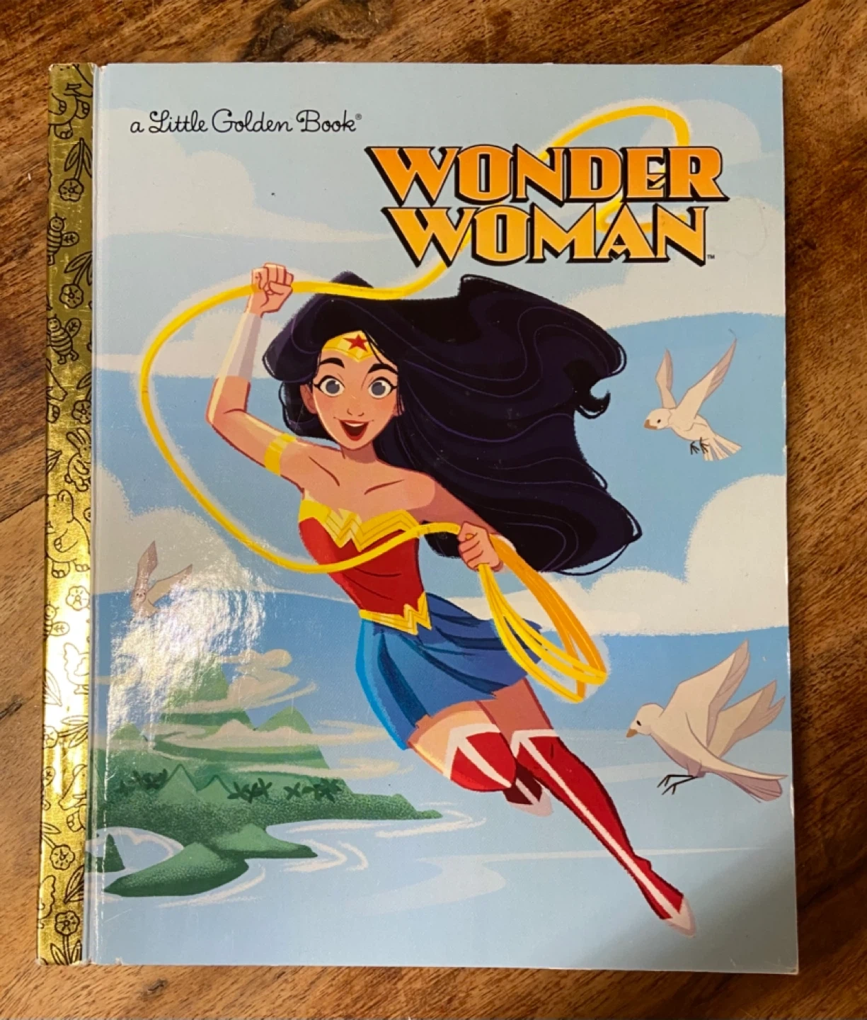 A Little Golden Book featuring Wonder Woman. This children's book is great for young readers and fans of superheroes. It's part of a beloved series of timeless stories.