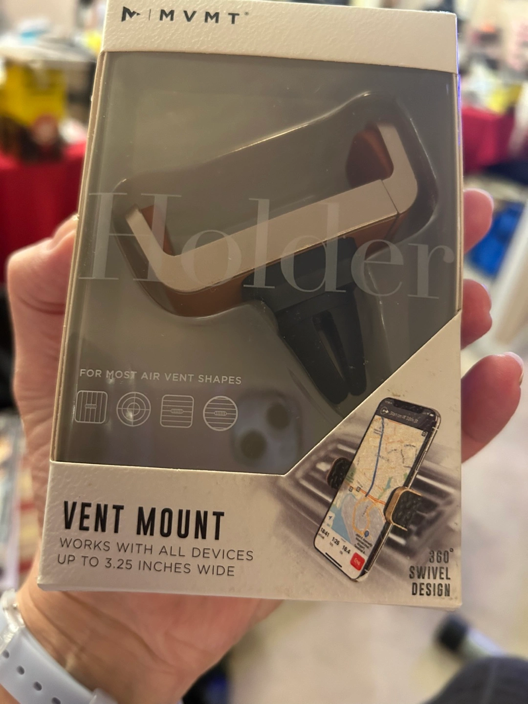 A universal car vent mount to fit most air vent shapes. The mount's spring-loaded grip expands to hold any smartphone up to 3.25 inches wide. It has a 360-degree rotating base, which helps you get to your destination with ease.