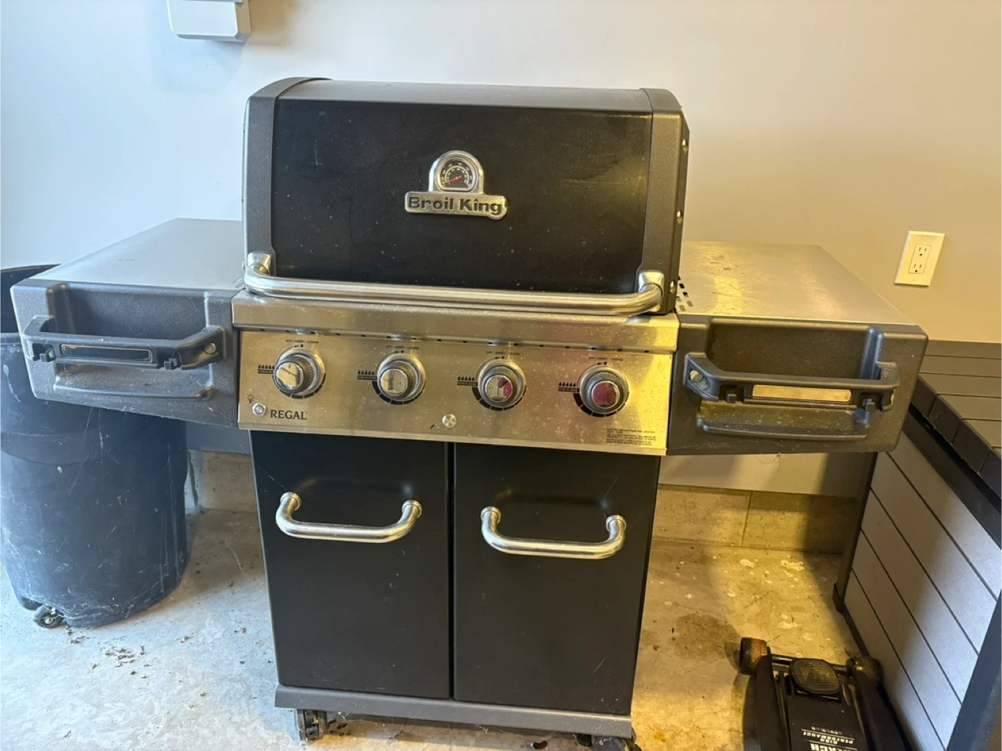 Selling a Broil King Regal propane grill. It has some signs of use but is still in good working condition. Includes material cover