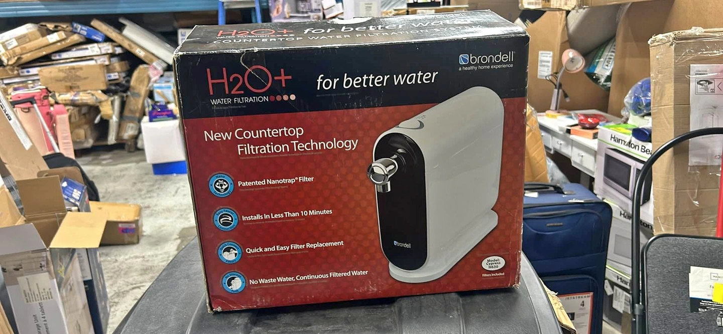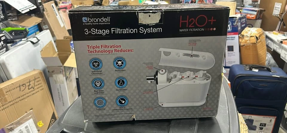 15Brand new in box. Powerful 3-stage filtration with patented Nanotrap technology. Triple filter system delivers high quality filtration usually found only in more complex under counter systems. Elegant slim profile countertop design. Continuous filtered water (with no wastewater like complex RO systems). Ergonomic pushbutton control for dispensing water. Quick and easy filter replacement. Fits 99% of standard kitchen faucets with provided adapters. Standard DIY installation in less than 10 minutes. 1 year limited warranty