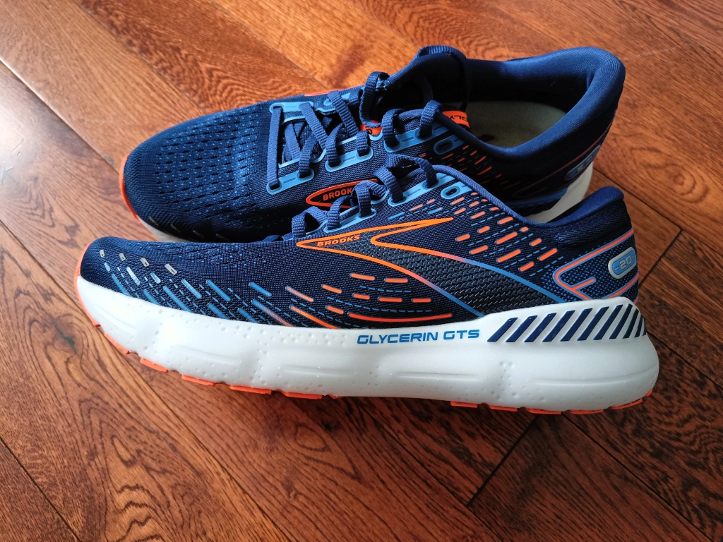 Selling a pair of Brooks Glycerin GTS 20 running shoes in blue! They're in great shape and ready for your next run. These shoes are designed for a smooth and supportive ride, so you can enjoy your workouts. The Glycerin GTS 20s are known for their comfort and stability, making them a great choice for runners of all levels