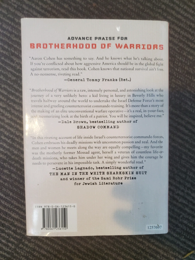 60Selling a copy of Brotherhood of Warriors by Aaron Cohen and Douglas Century. It's a book about counterterrorism units. If you're interested, send me a message!
