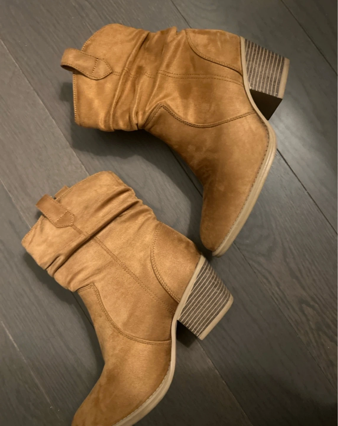 10These are some great looking brown ankle cowboy boots! They have a nice heel and look great with jeans or a dress