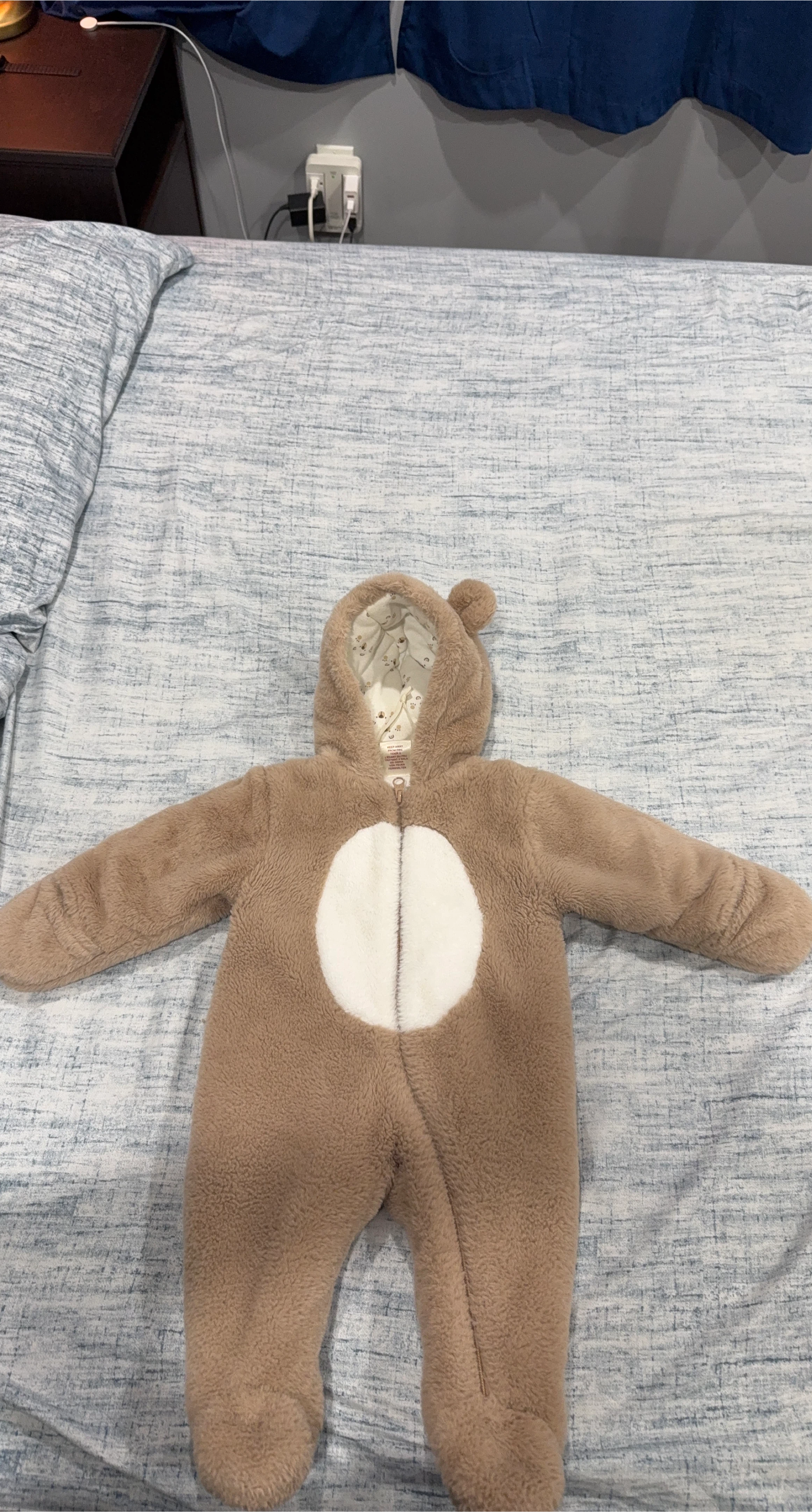 10A cozy brown bear onesie for your little one! It's super soft and perfect for keeping baby warm during the cooler months. The onesie features a cute bear design with a white circle on the front