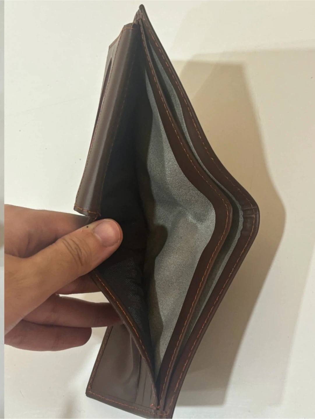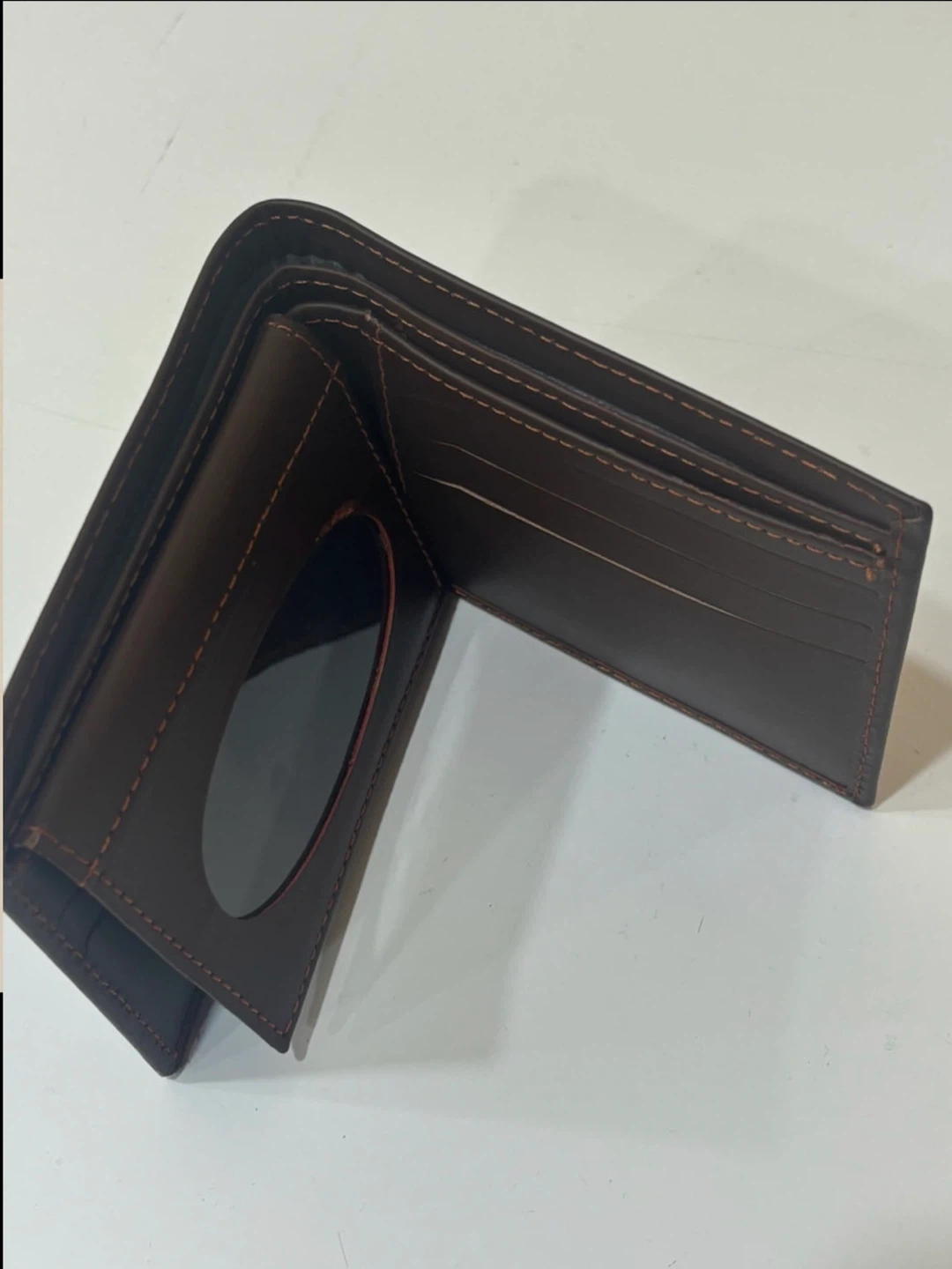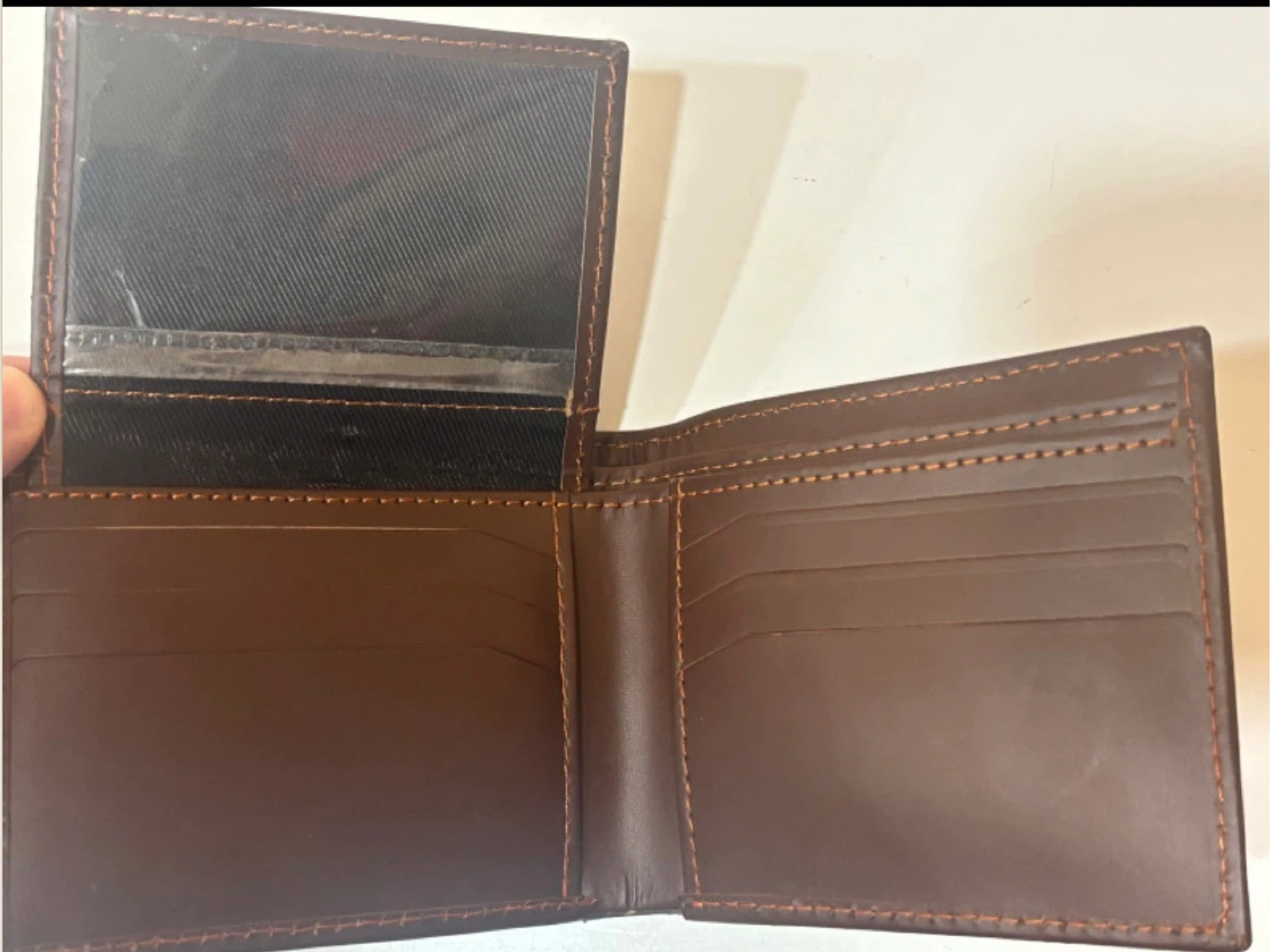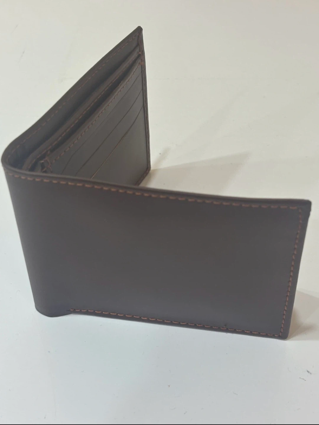 Selling a gently used brown bifold wallet. It has slots for cards and a clear window for your ID. It's in great shape and ready for a new home!