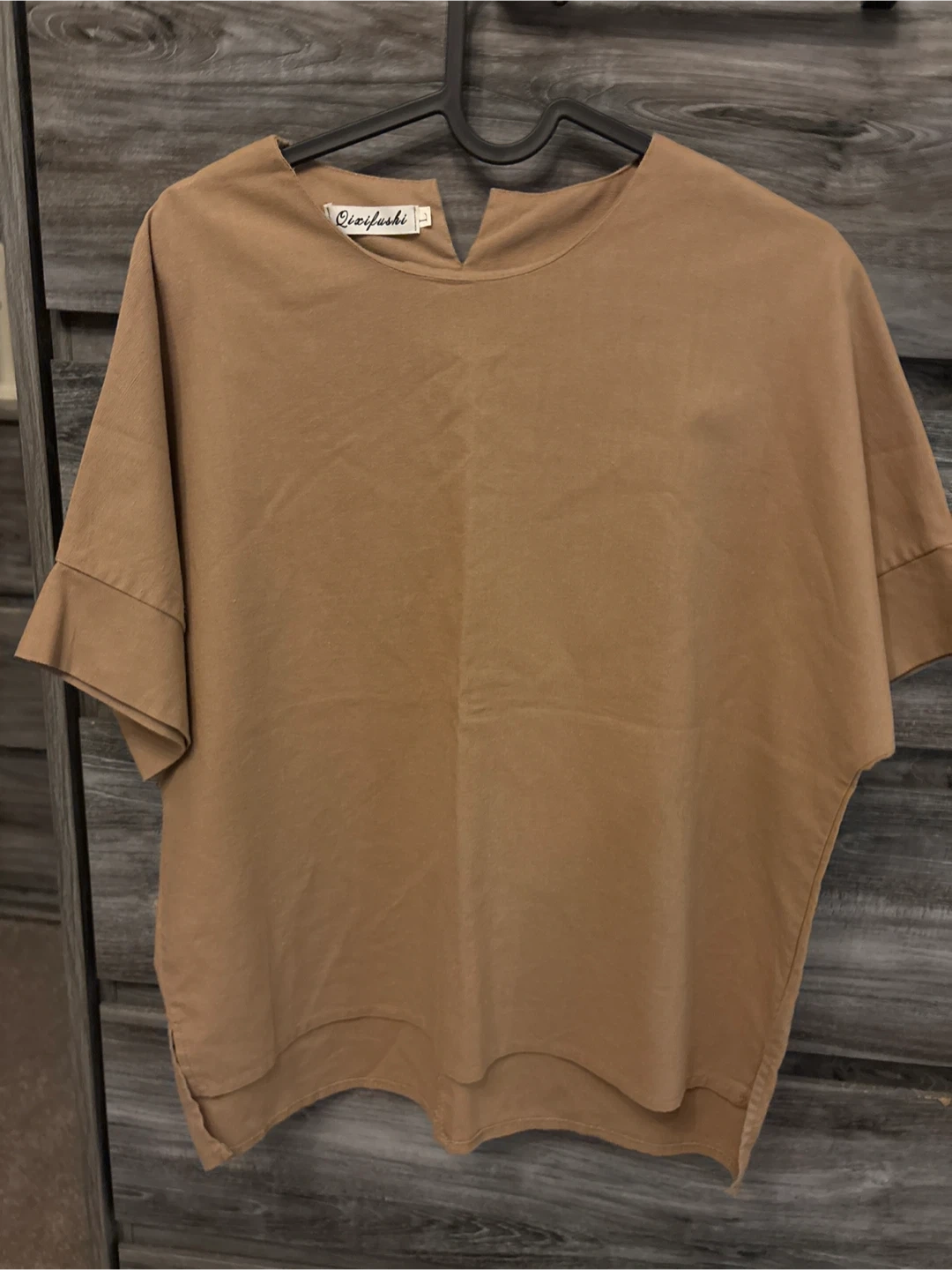 Selling a blouse in a lovely brown colour. It's a size L and in great condition! Perfect for adding a touch of casual elegance to your wardrobe