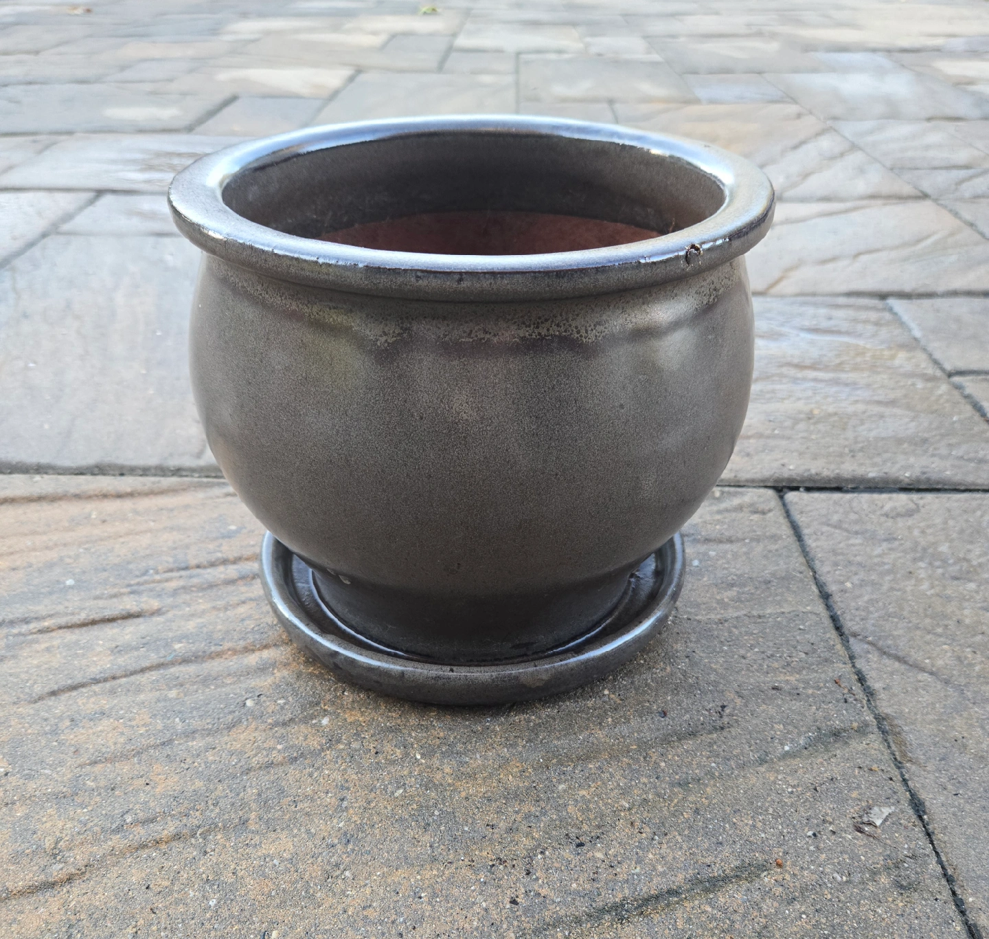 10Heavy Duty Ceramic Plant Pot with whole and Matching Saucer Brown color 7"D x 7"H Pick up from Richmond Hill Cash only
