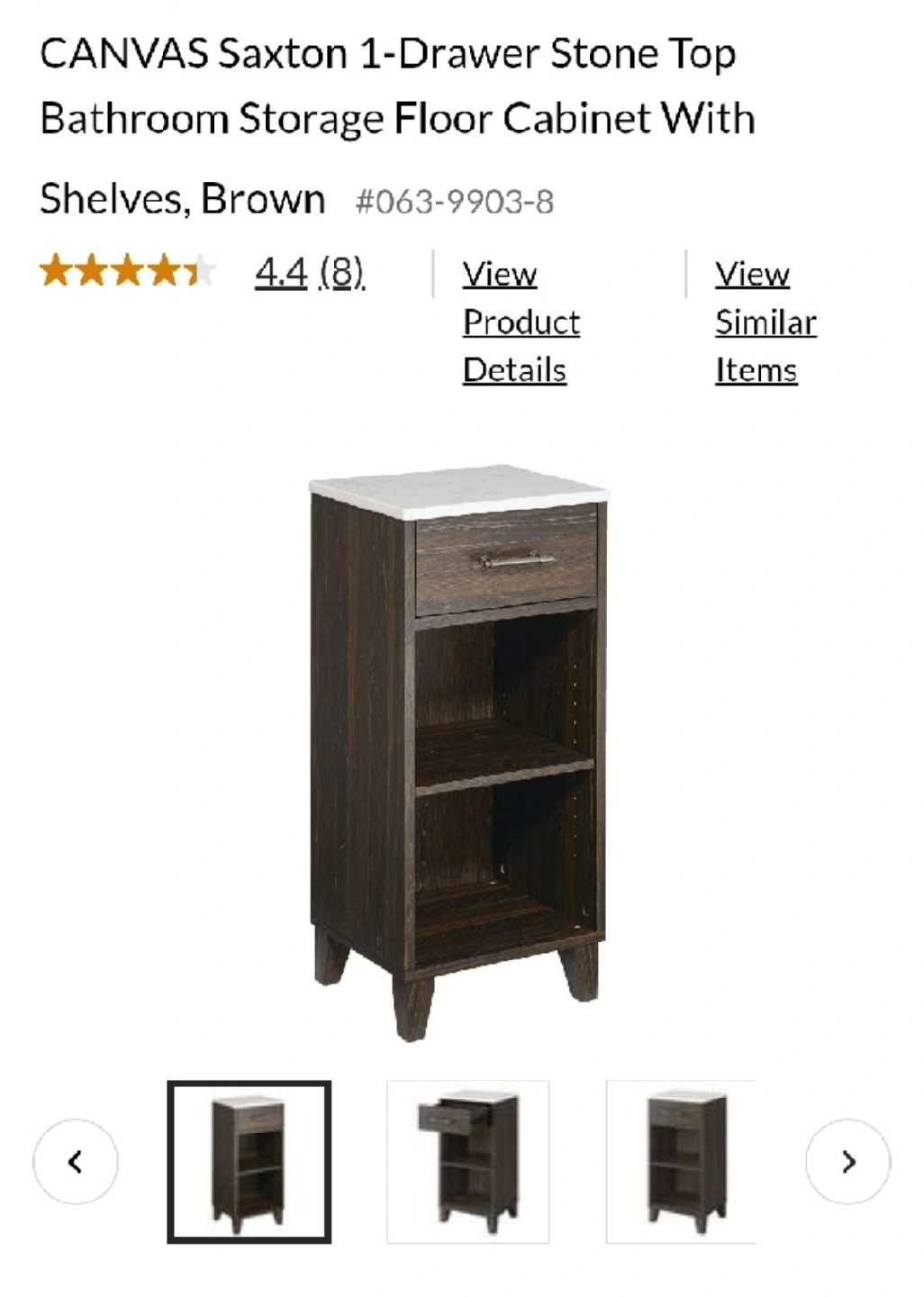 807🏠Pickup only -- near Dufferin and Eglinton In excellent condition A bathroom storage floor cabinet with shelves and drawer. Very versatile, can be used in different ways. Was using beside stove as a holder. 34 inches height, 13 inches depth, 15.75 inches width
