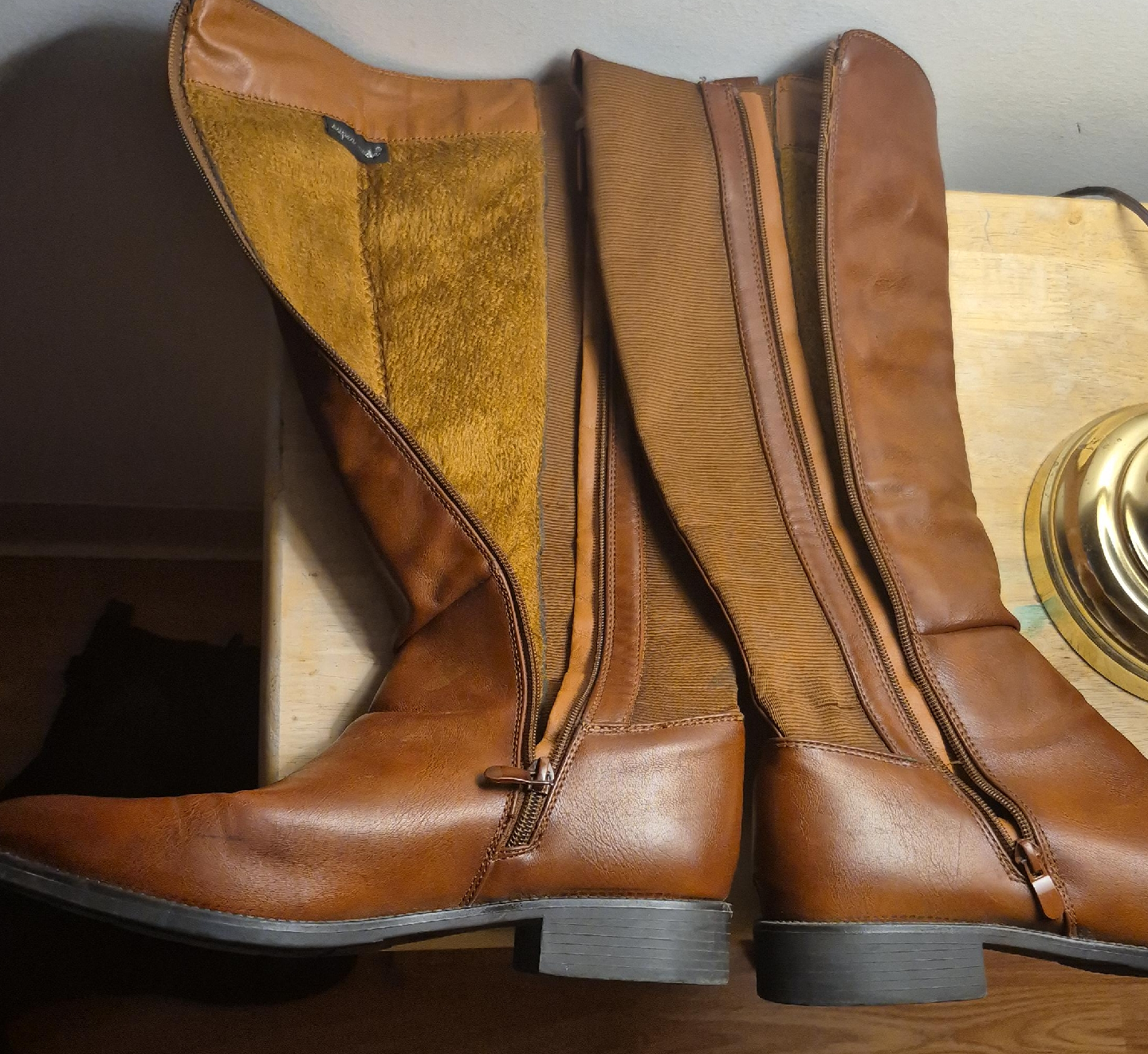 19Selling a pair of brown knee-high boots in great condition! They are a size 41 bought in milan, us size 10.5 and feature a zipper closure. These boots are perfect for adding a touch of style to any outfit!