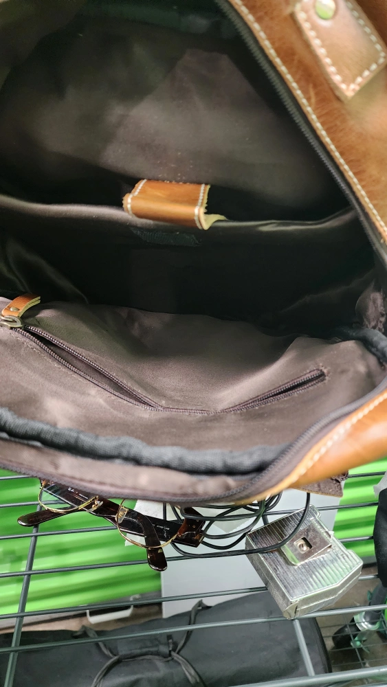 Selling a brown leather backpack. It's in good condition and has a unique vintage look with its brown leather and stitching details. Perfect for everyday use or as a stylish travel companion!