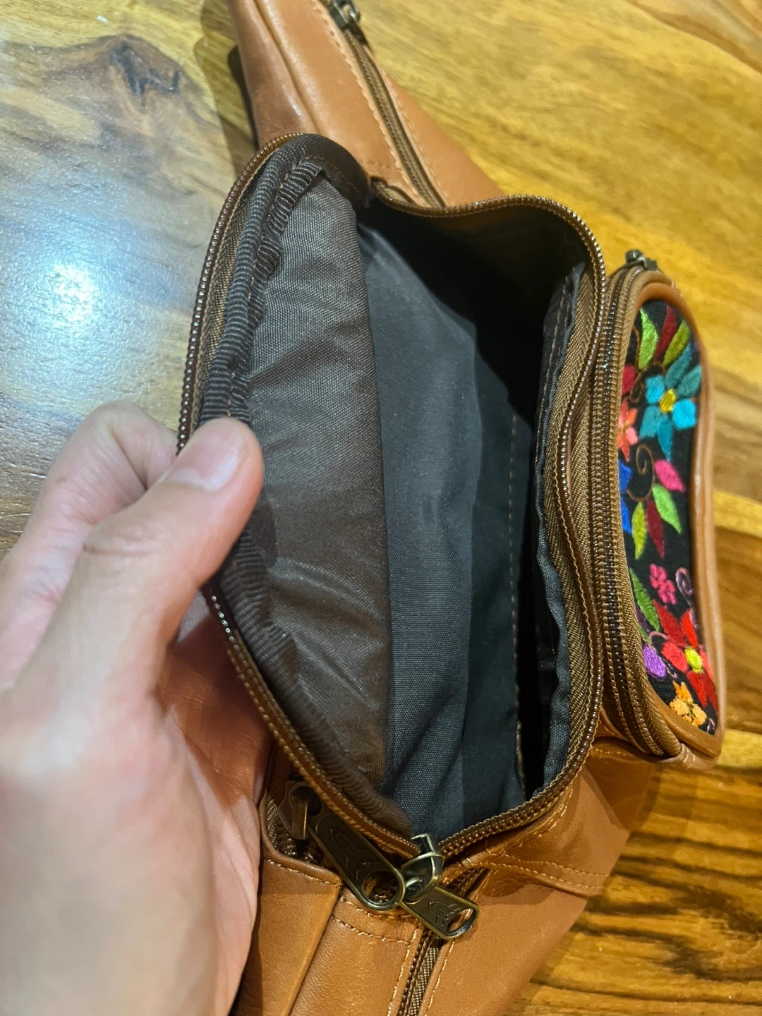 15Real leather kangaroo bag – handmade in Ecuador, new condition, colorful embroidery & buckle clasp. Pickup in Yaletown. Price is $40 and will take reasonable offers.
