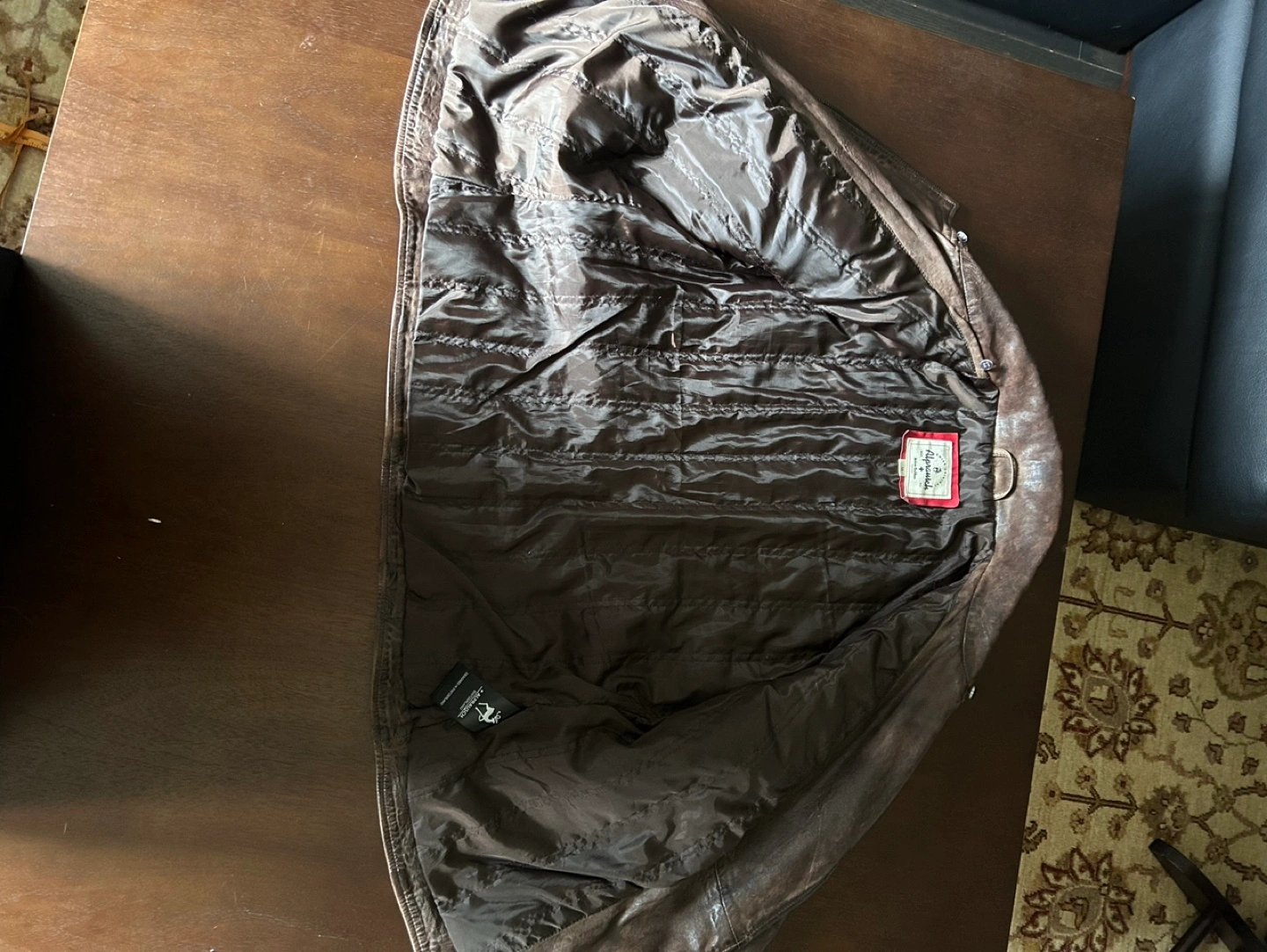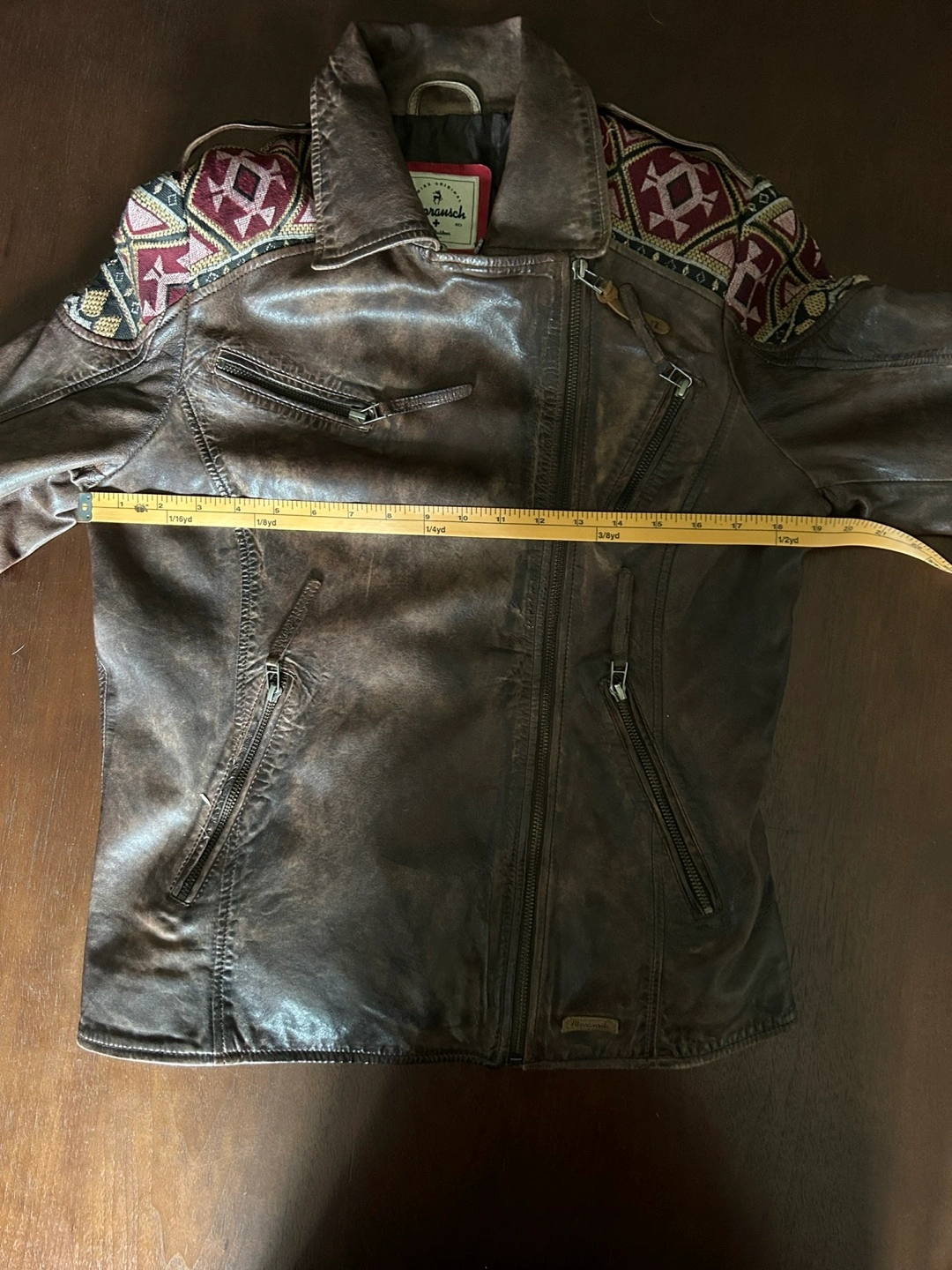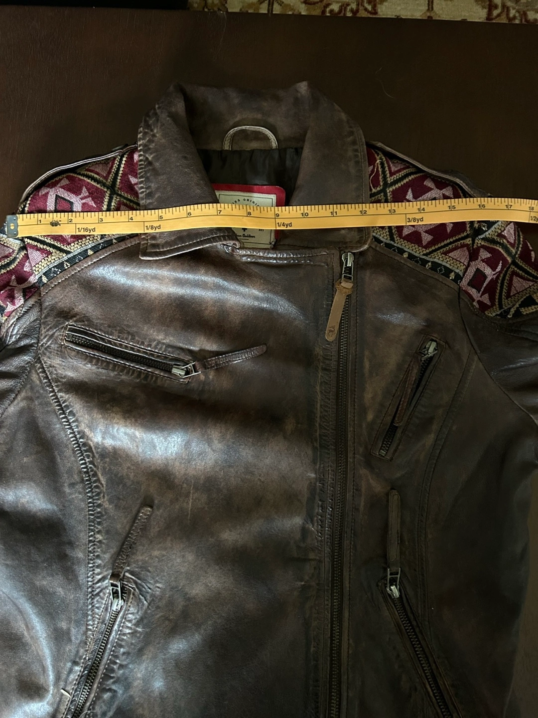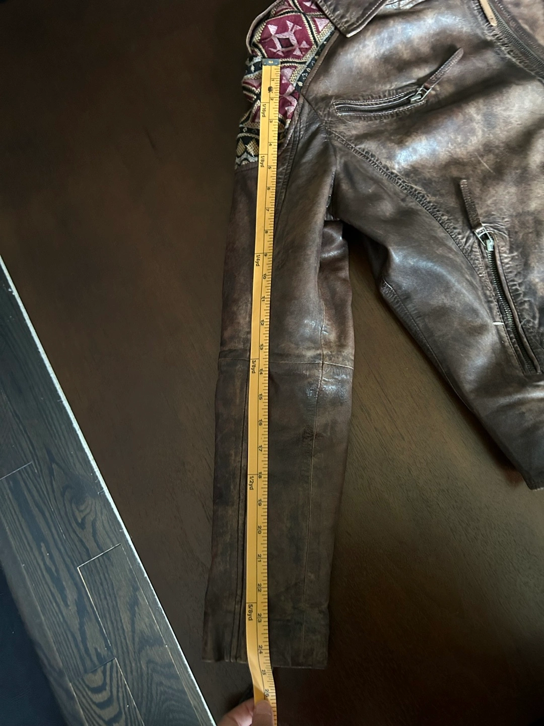 Women's brown leather jacket. Features embroidered detailing on shoulders and back. Zipper closure. Multiple pockets. Good condition.bought from Sport Life for $340.