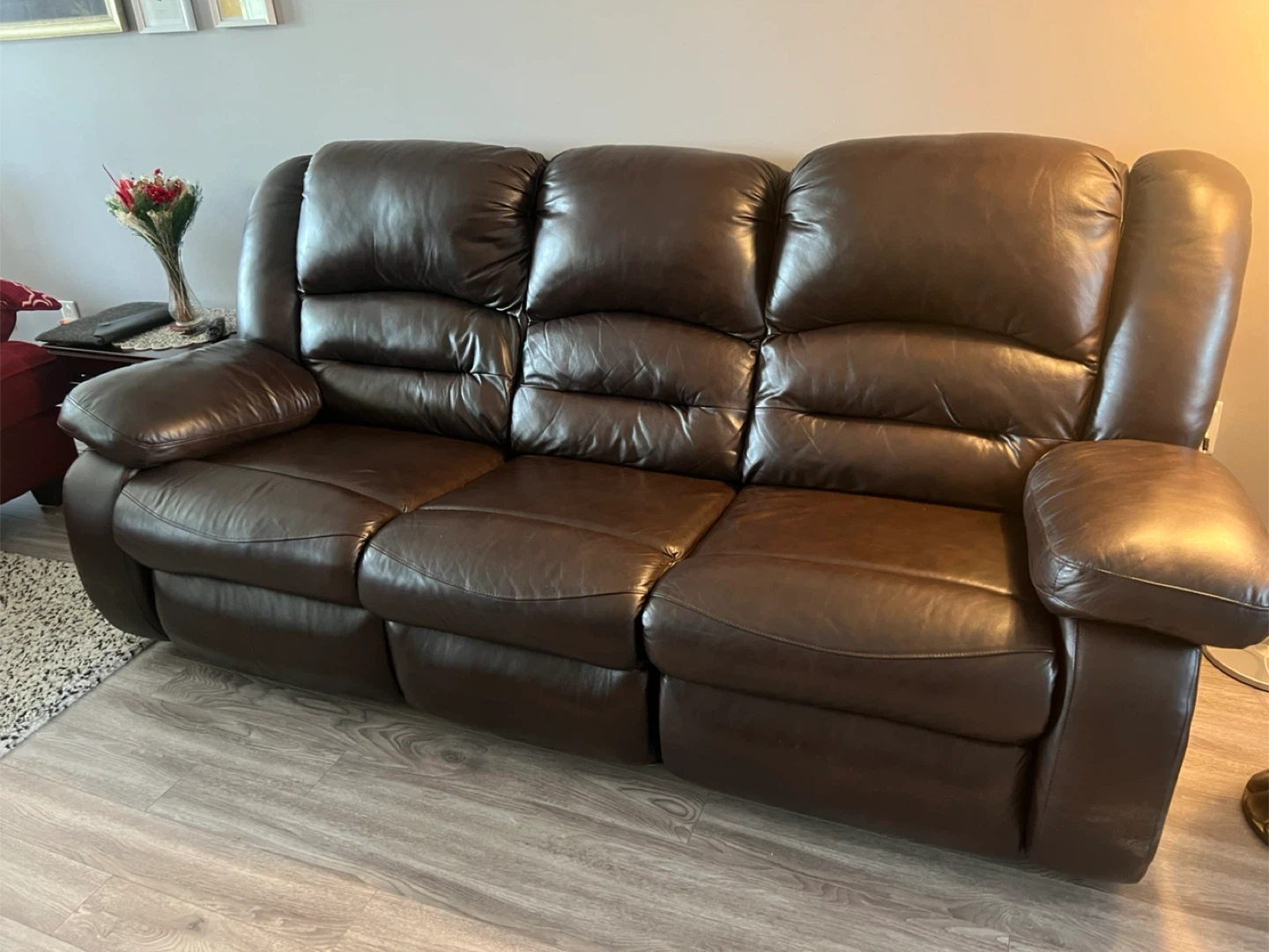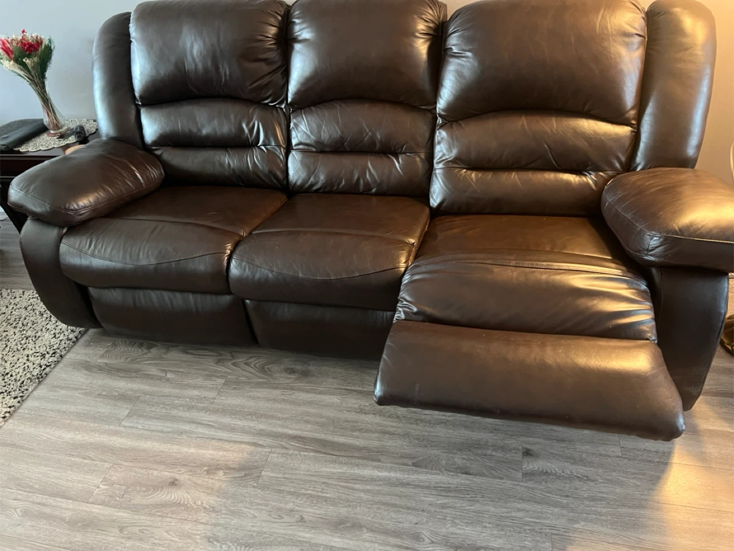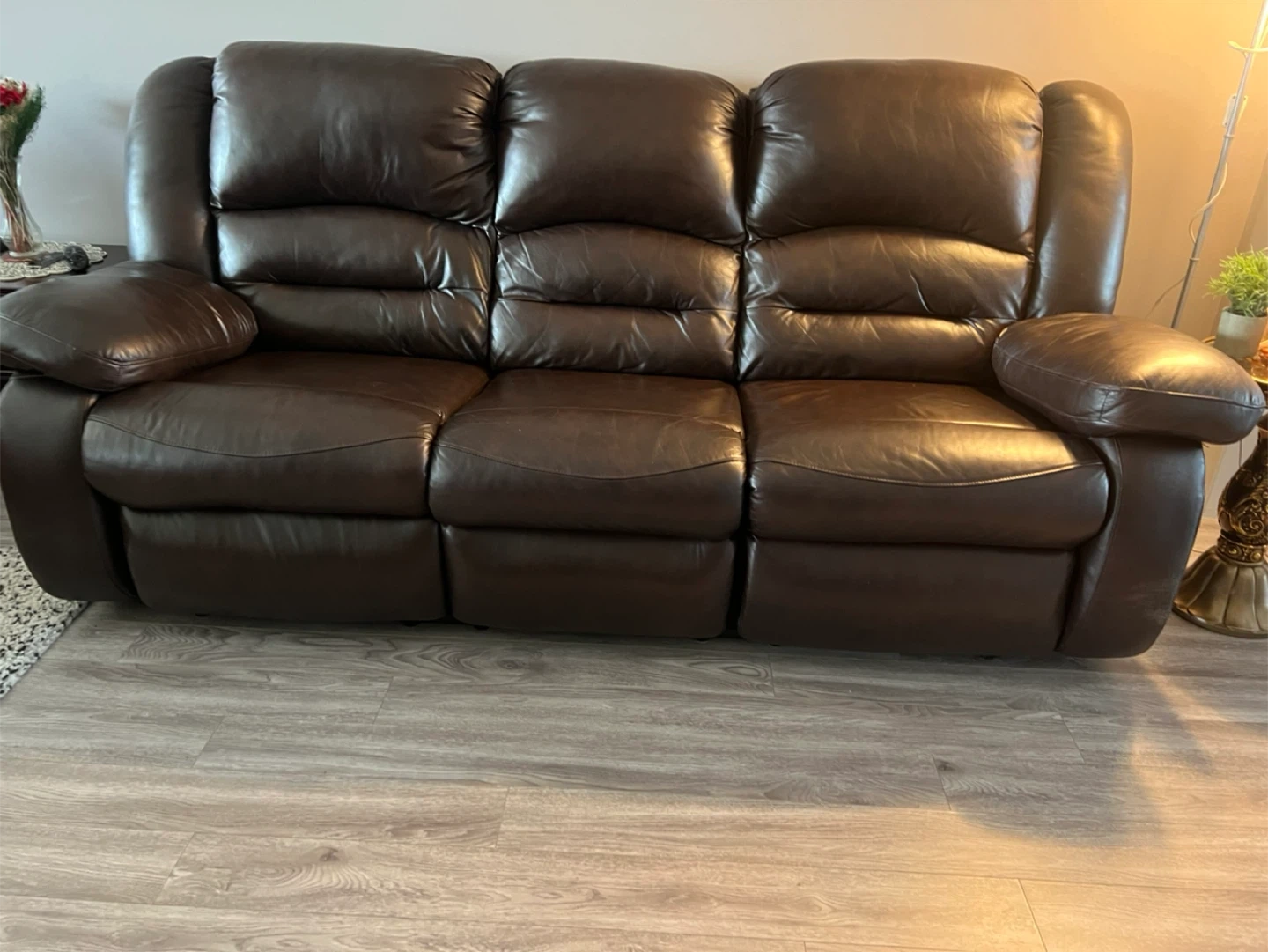 Brown Leather Reclining Sofa