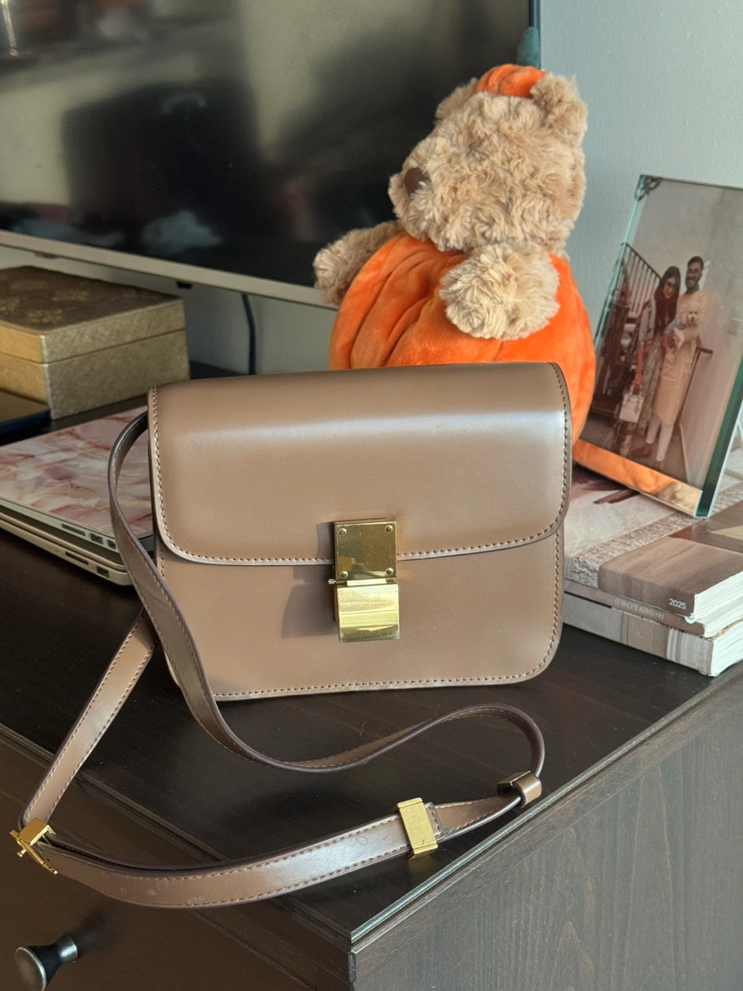 142Here's a stylish brown leather shoulder bag! It's in great condition and ready for a new home. Perfect for everyday use or a night out