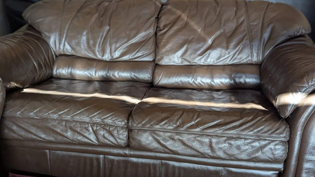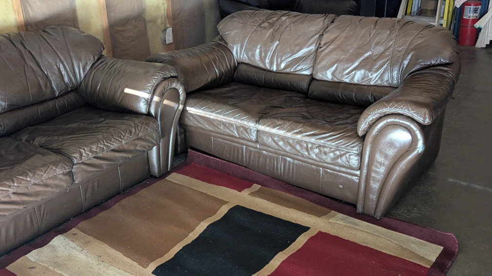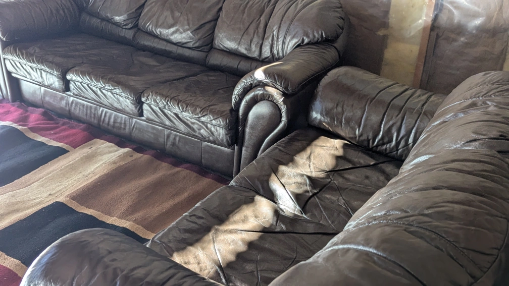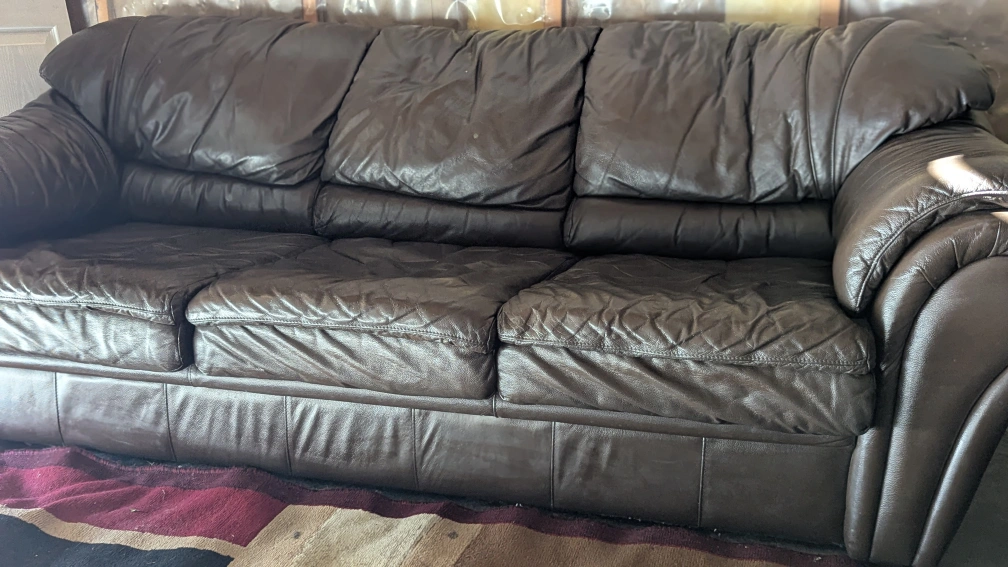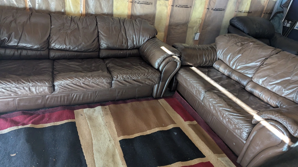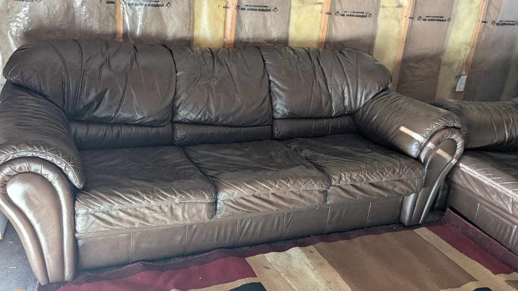 Perfect for a living room or den very comfortable no damaged no scratches come from the very clean house non smoking no pets price included delivery very comfortable perfect for living room or basement for movie night