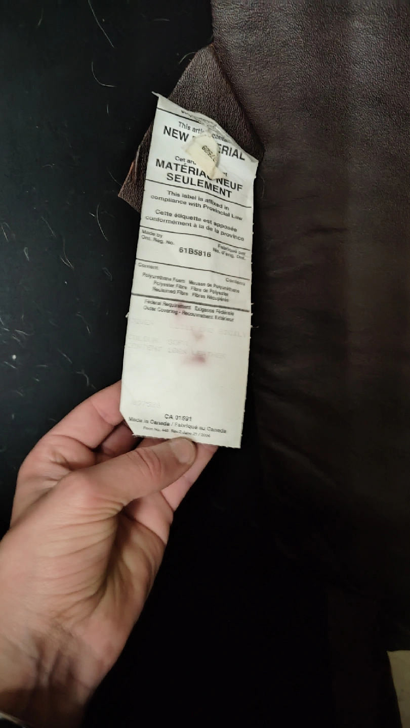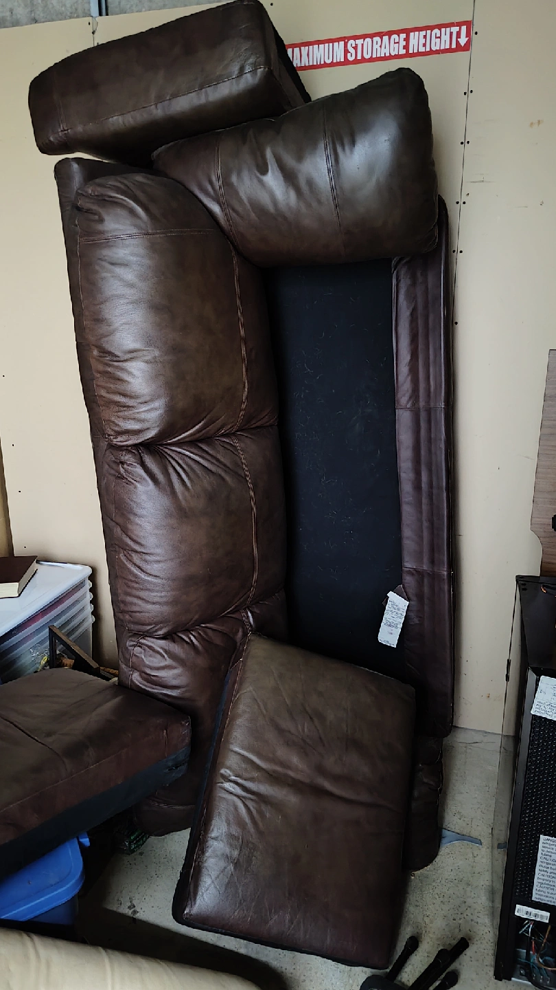 10Selling a brown leather 3 cushion sofa in great condition! It's real leather and made in Canada. It has been sitting in my storage unit for a while and I'd love for it to go to a good home rather than just throwing it out. All cushions are accounted for and just a slight visual scratch on one of the arm rests. Dimensions are approximate but it's very spacious and can fit a 6' tall person on it.