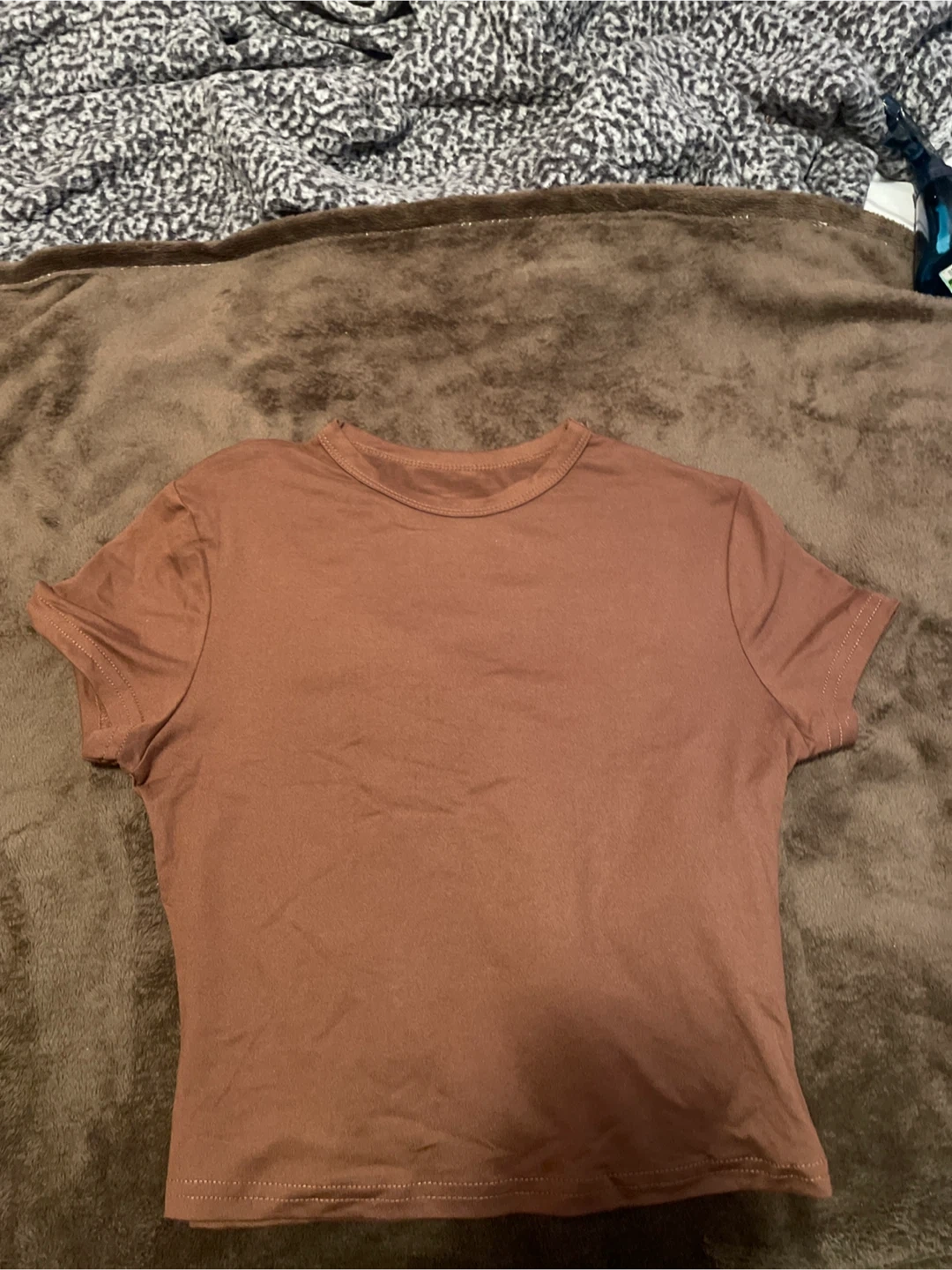 A cute brown short sleeve crop top. It's in great condition and ready for a new home!