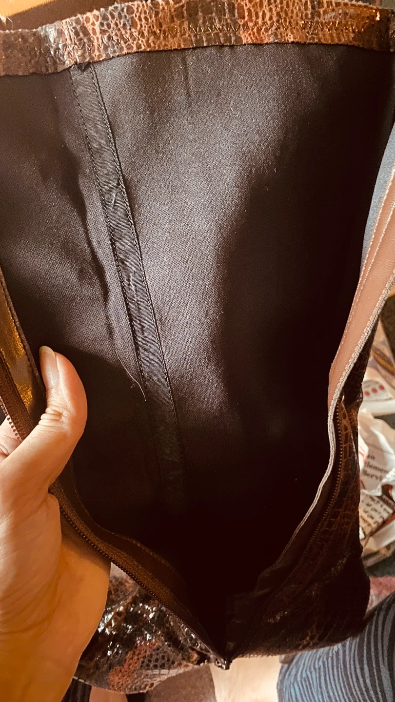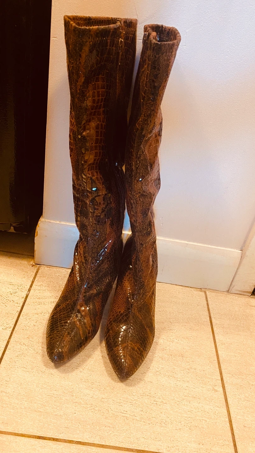 549Stylish knee-high boots featuring a unique brown snakeskin print! They have a sleek design with a heel, perfect for adding a touch of flair to any outfit