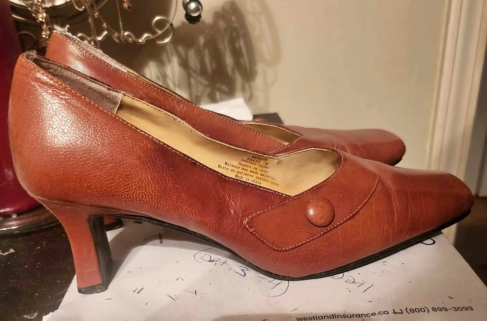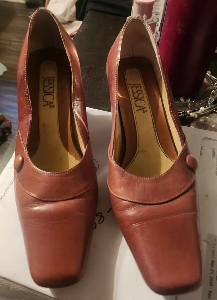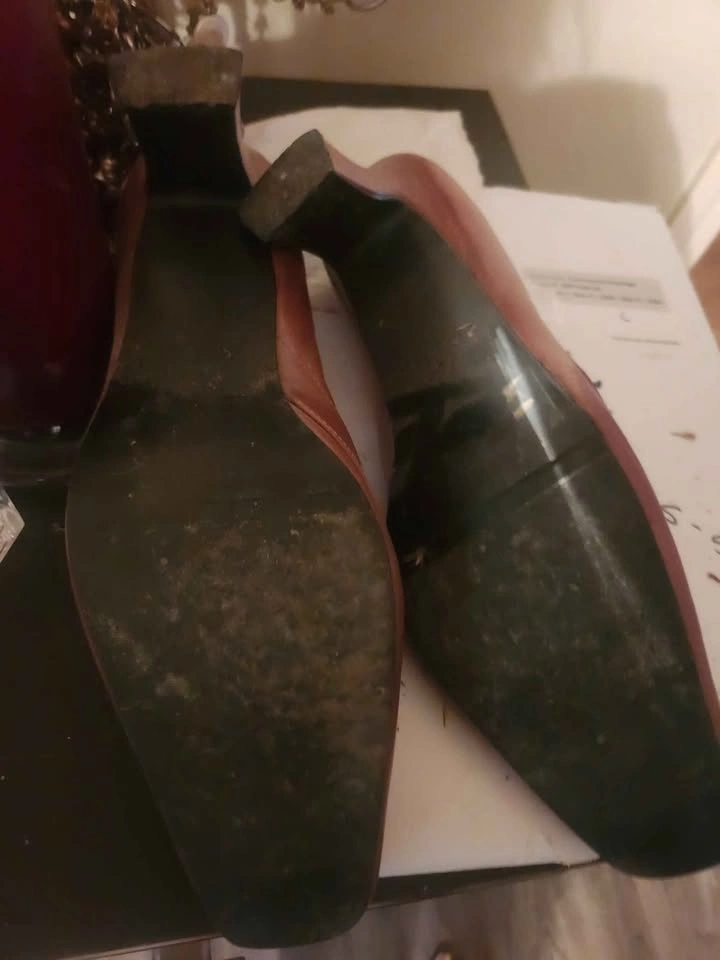 Cute slip-on sandals with little gold flowers, sz 7.5