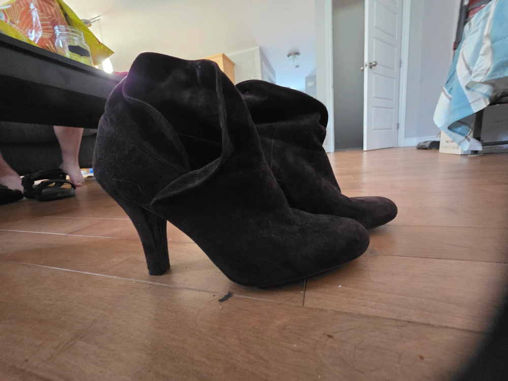 Selling a pair of brown suede heel booties. They are brand new and ready for a new home! (Brand name: Enzo Angiolini)