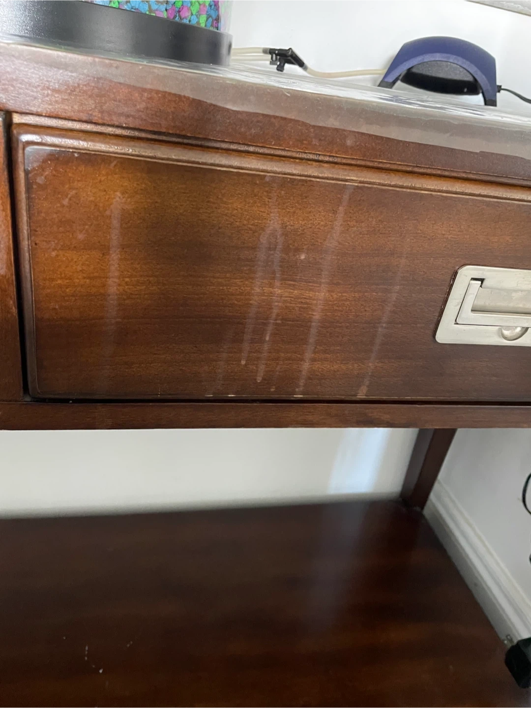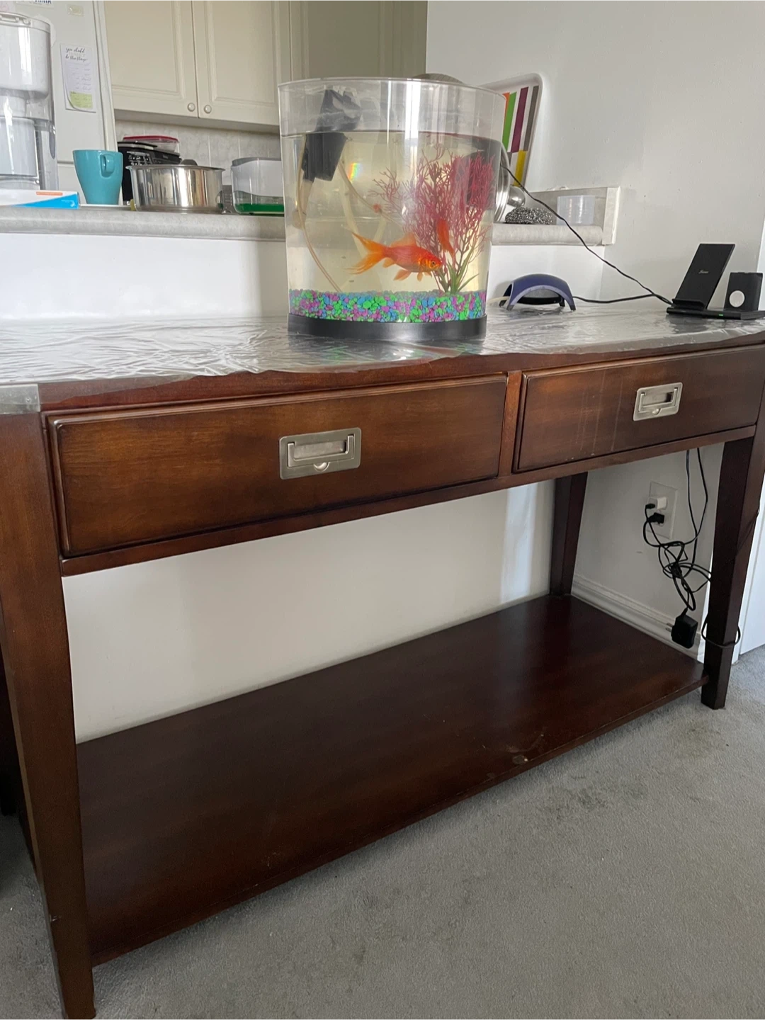 26Viewing Available Before Purchase You’re welcome to come and see the item before buying. Pick-up is available on Saturday, November 8th, between 9AM to 11AM. Selling a brown wooden console table with drawers. It's in used condition with some signs of wear, as pictured. It would be perfect for an entryway or living room