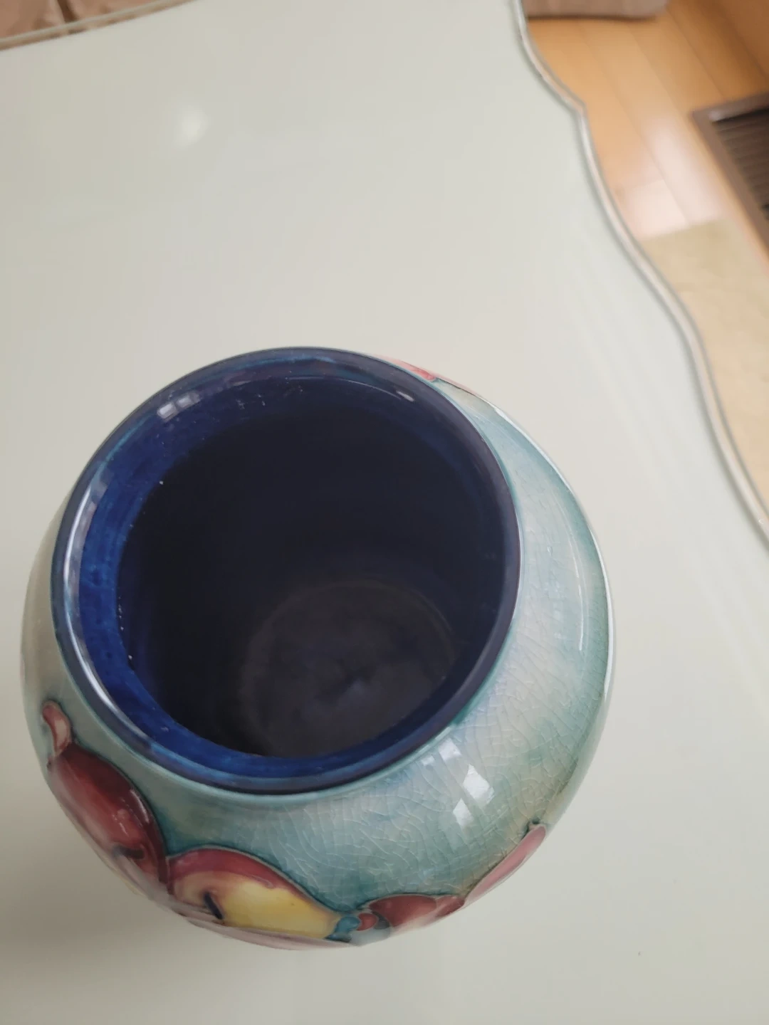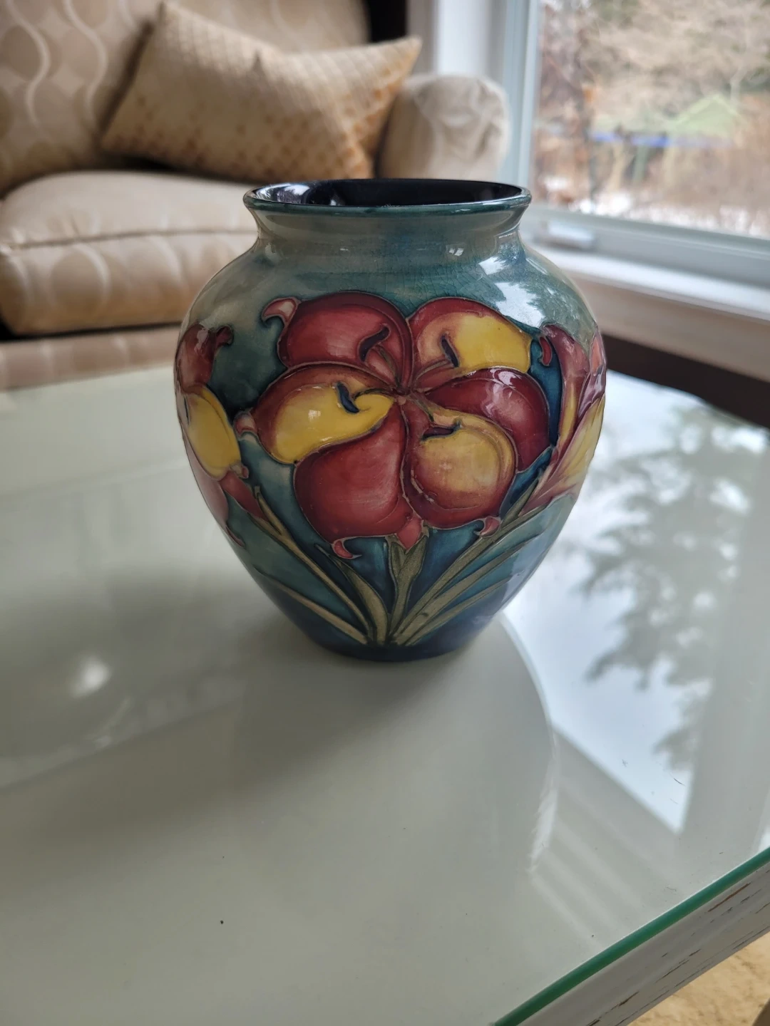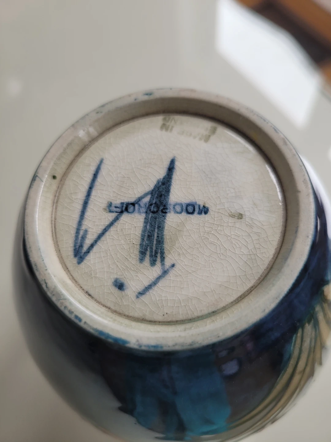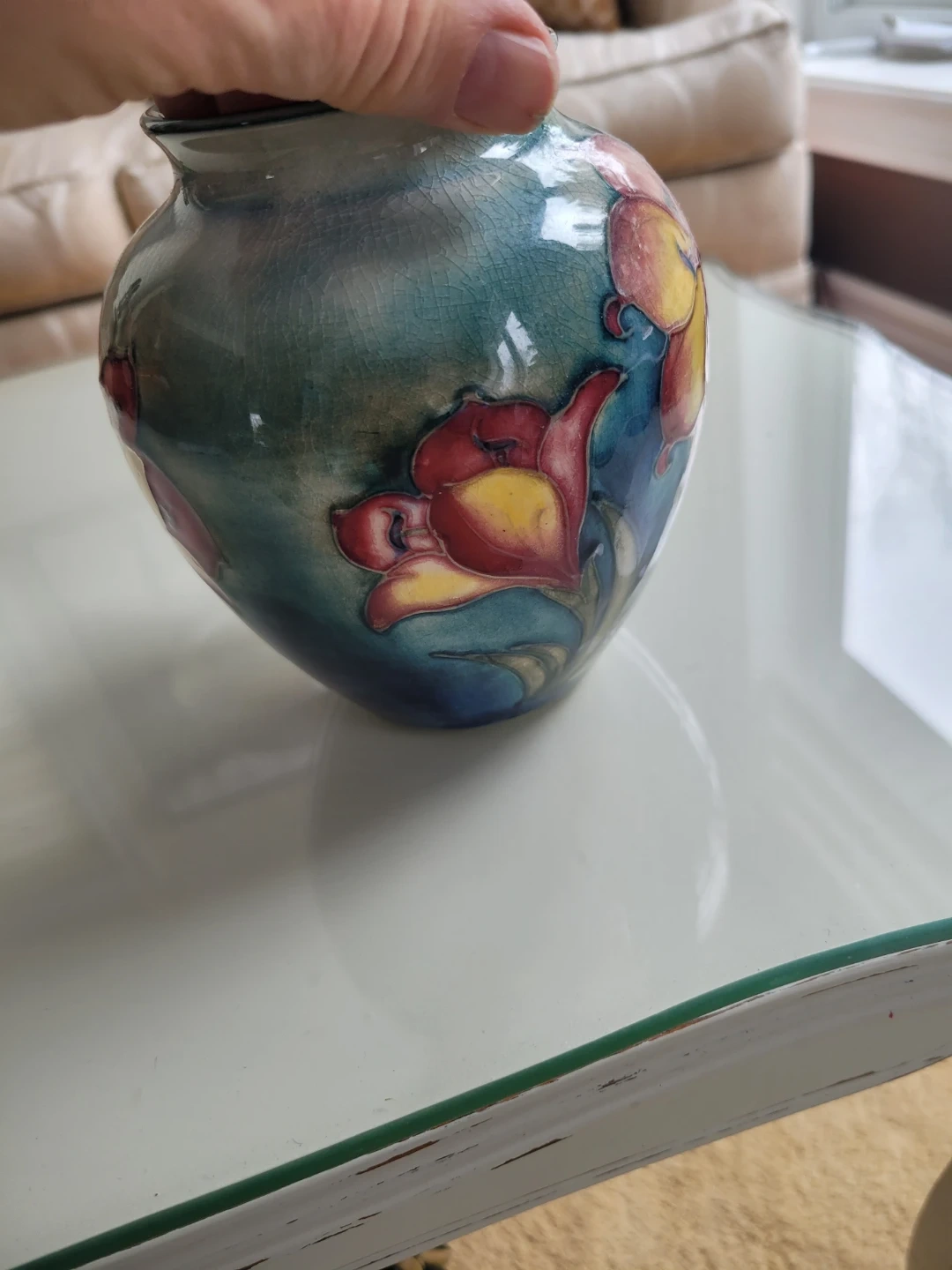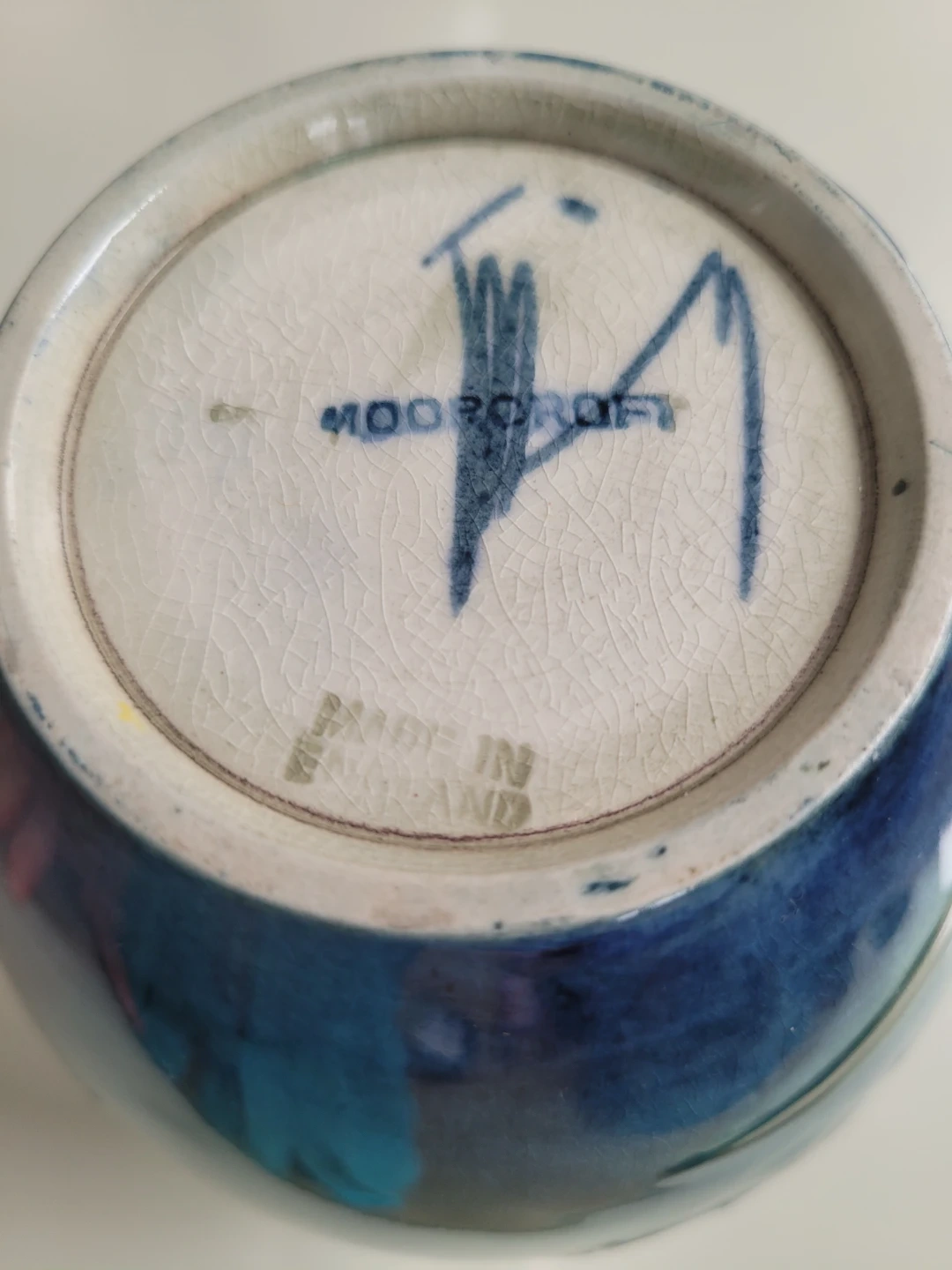 Vintage MOORECROFT Pottery Vase is approx 5" high. Signed on base, I think this is the son Walter? Made in England