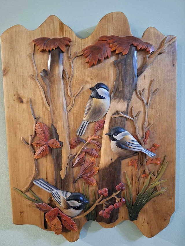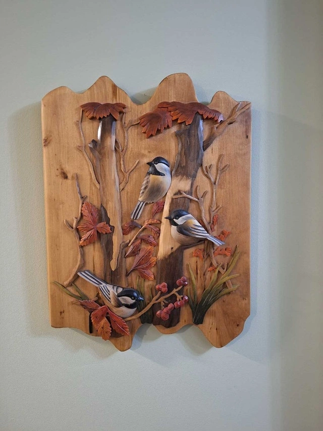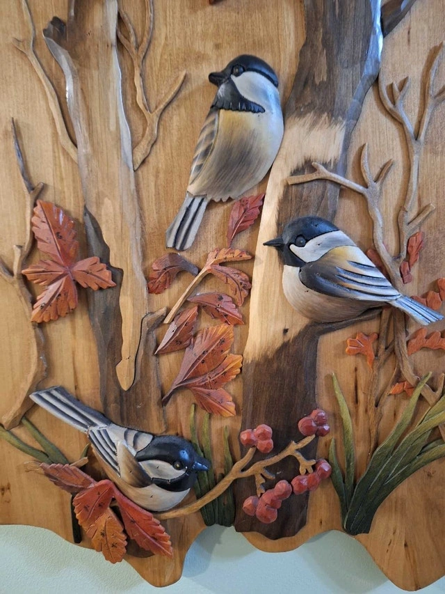 Buy & SellCarved 3D Wood Artwork ChickadeesCarved 3D Wood Artwork Chickadees$50Beautiful 3D carved wood artwork featuring chickadees, 17" L x 13" W. Asking $50 cash only. Curbside pickup in south Ajax. From a smoke-free home.WHERE TO MEETCheck LocationView MapSELLERverifiedLUPickering Beach1599 reviews0 chats·1 favorites·21 viewsSEND CHAT TO SELLERHi LU! I’m interested in your listing.Hi LU! I’m interested in your listing.Get the Karrot app to chatSign In to chat
