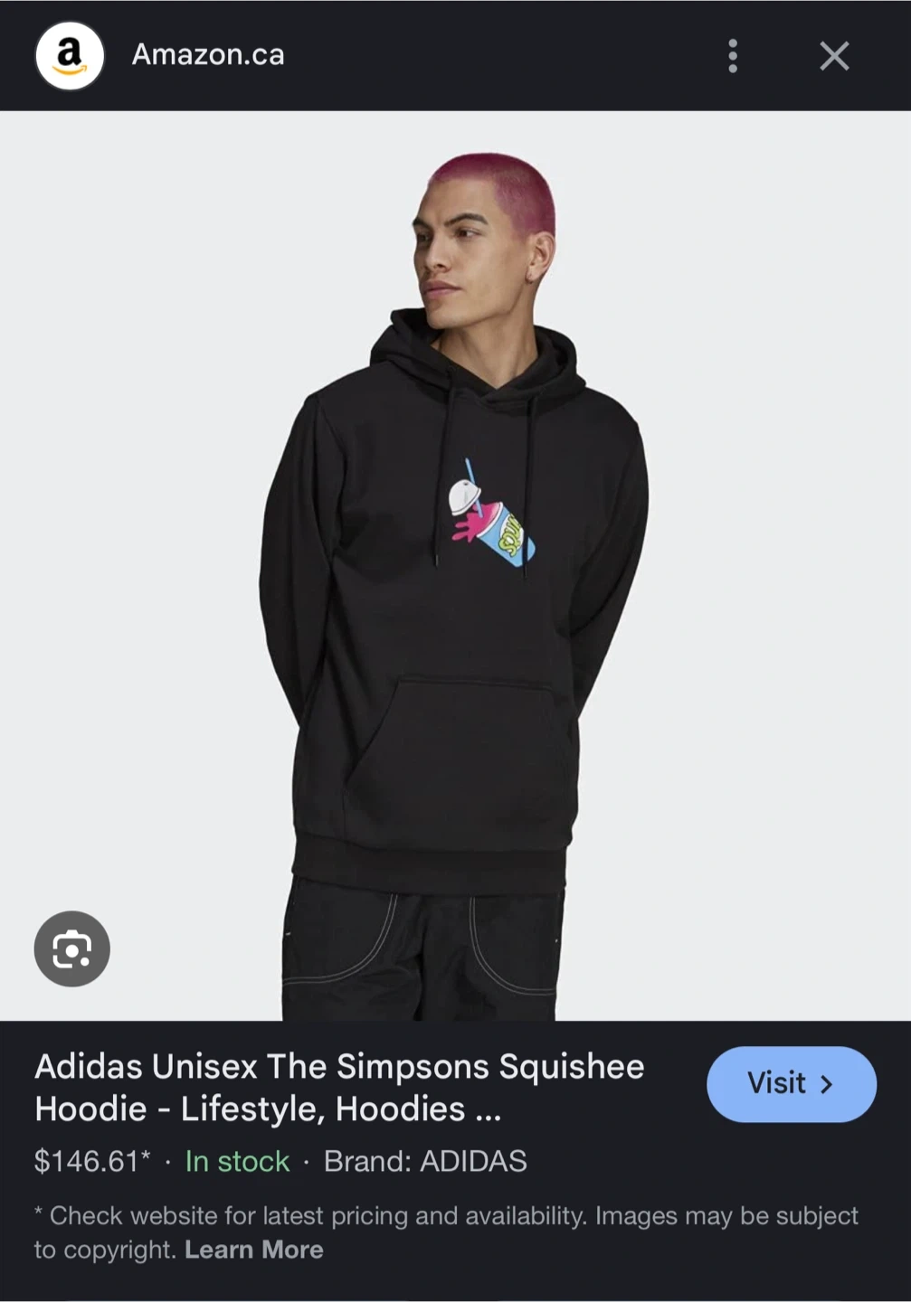 Buy & SellAdidas x Simpsons Hoodie - Size M ‼️Adidas x Simpsons Hoodie - Size M ‼️FreeAdidas x The Simpsons Squishie hoodie (size M)! Originally got it for around $100.ConditionGoodSizeMBrandAdidasWHERE TO MEETCheck LocationView MapSELLERAliceKitsilano19722 reviews1 chats·1 favorites·28 viewsSEND CHAT TO SELLERHi Alice! I’m interested in your listing.Hi Alice! I’m interested in your listing.Get the Karrot app to chatSign In to chat