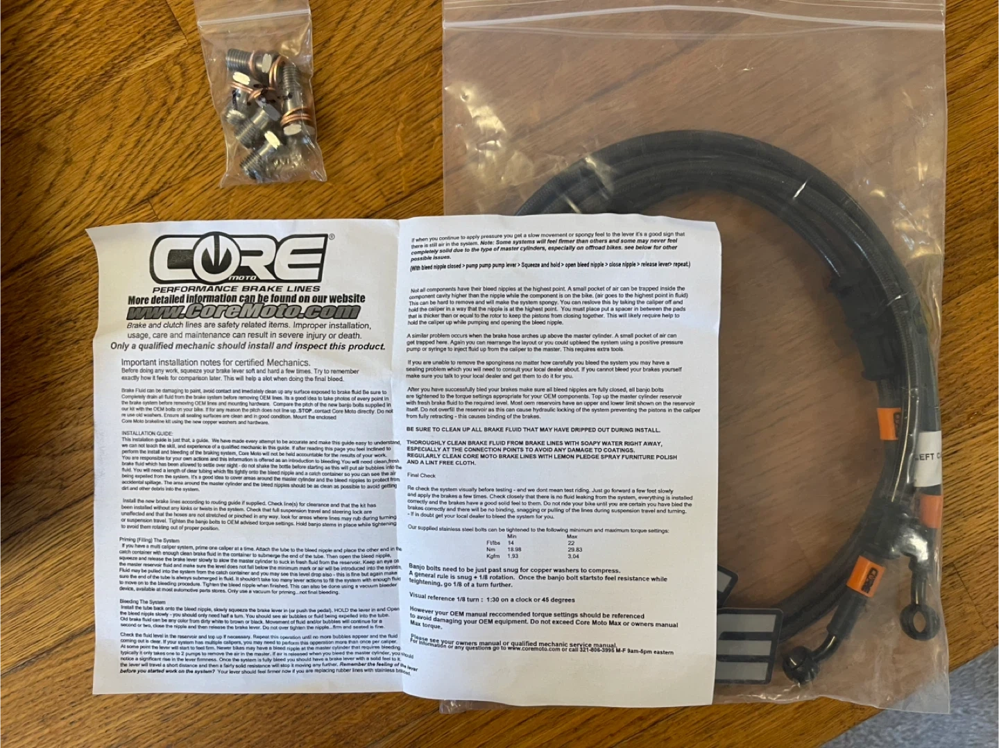 CORE MOTO Performance Brake Lines - 100% Stainless Steel
