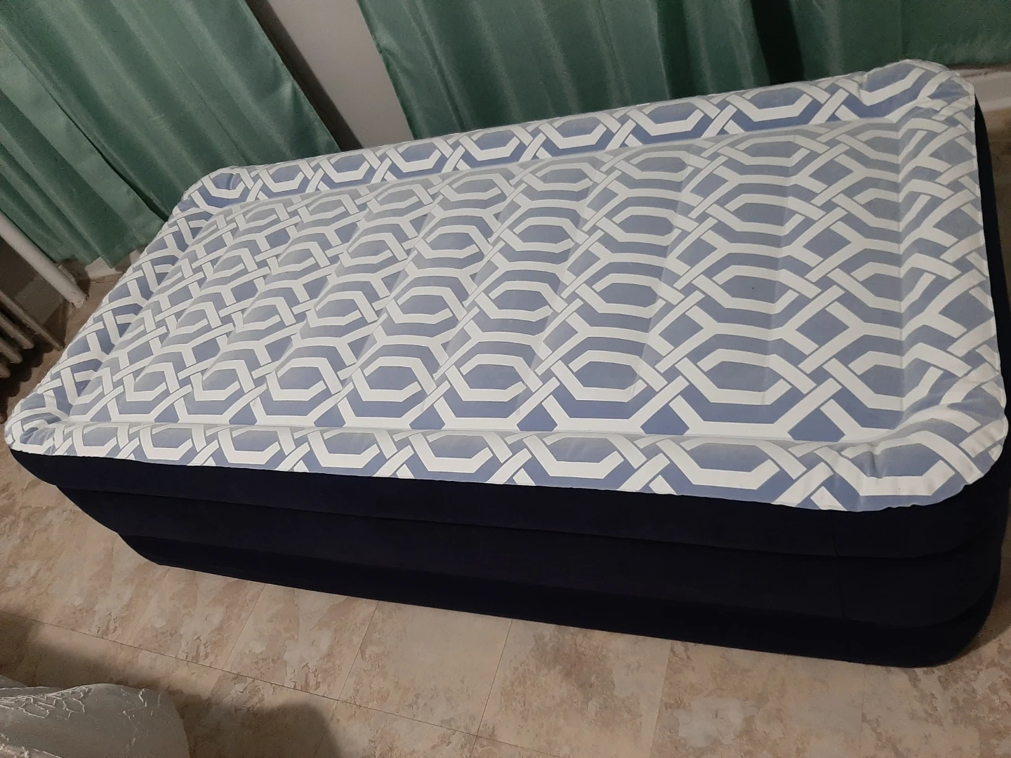 Selling a Bestway air mattress! It comes with a built-in pump for easy inflation and deflation. The mattress is in good condition and includes its original carrying bag. Perfect for guests or camping!