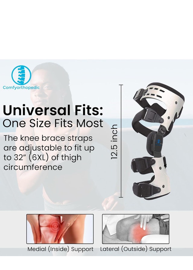 One size fits all with adjustable straps. OA Unloader Knee Brace for Medial Knee Pain, Arthritis Support, Osteoarthritis, Bone on Bone, Inside Joint Cartilage Degeneration. Valgus Varus Side Stabilizer. L1851 L1843. Cash accepted.