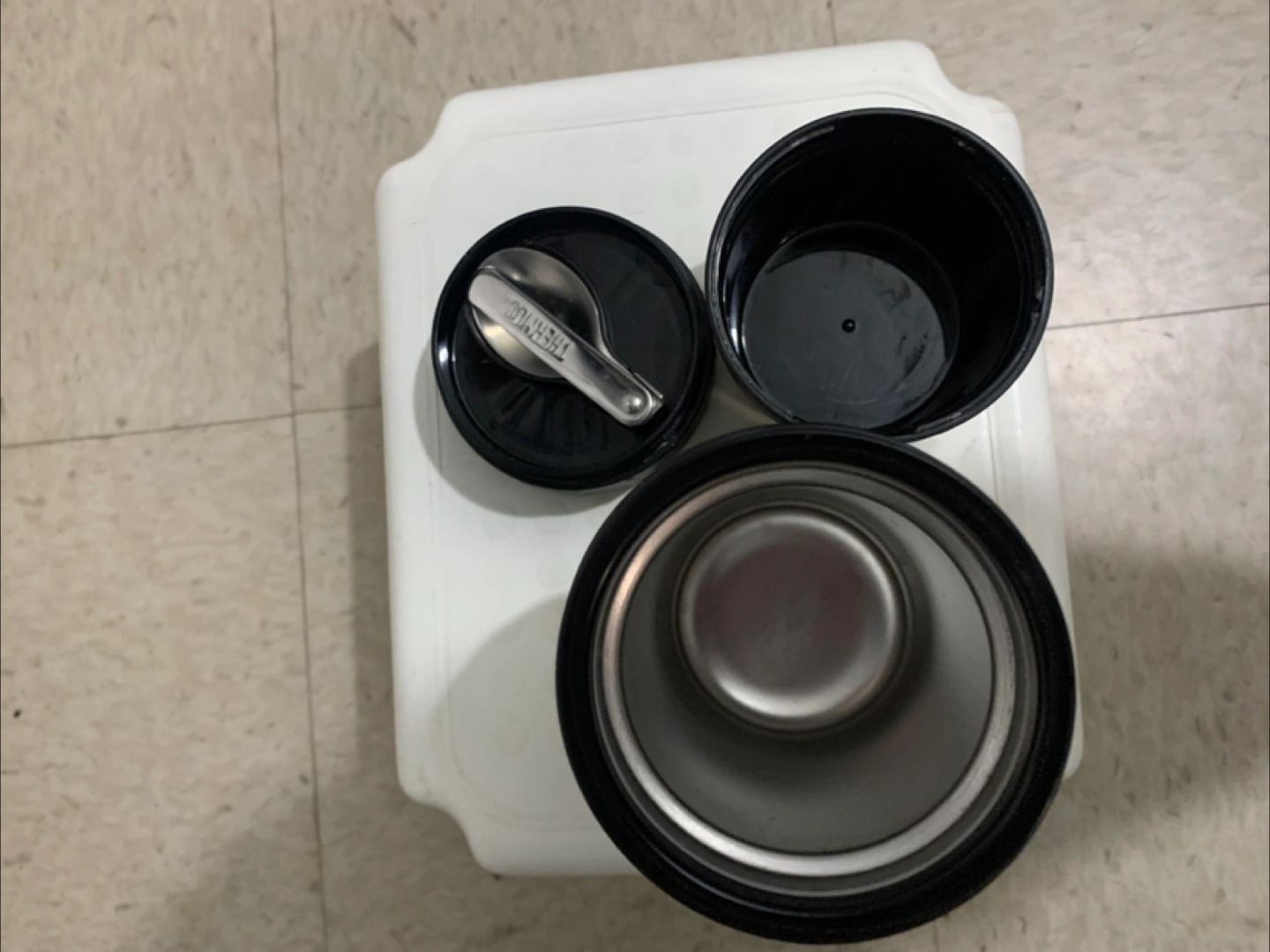 Keep your food hot or cold on the go with this Thermos food jar! It's stainless steel and comes with a spoon.