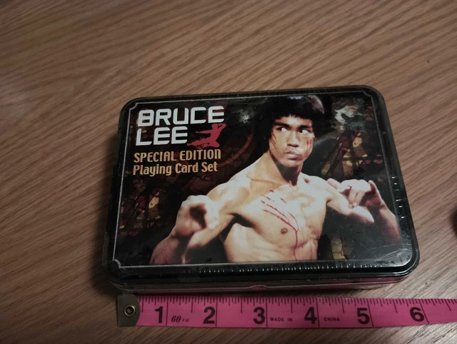 15SEALED collectors tin with 2 sets of Bruce Lee Playing cards. The Bruce Lee special edition card set contains both the Bruce Lee affirmation playing cards and Bruce Lee playing cards pack. These Bruce Lee collectibles are a must have for any fan! Product highlights: Contains 2 packs of official poker-sized playing cards Bruce Lee gift tin Water resistant finish 104 unique cards featuring images, quotes, and affirmations of Bruce Lee Pick up near Banwell and the Expressway.