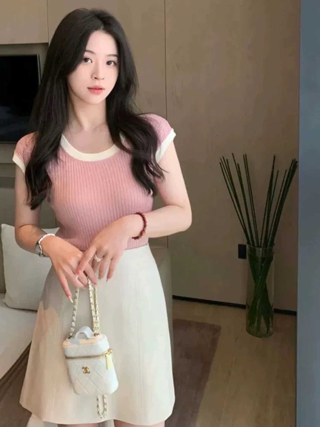 New! Soft Pink Ribbed Knit Top