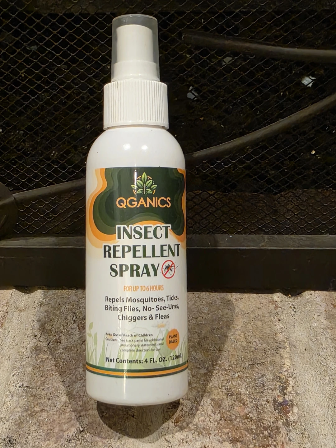 This Qganics insect repellent spray repels mosquitoes, ticks, biting flies, no-see-ums, chiggers, and fleas. It's plant-based and lasts for up to 6 hours. Net contents: 4 FL. OZ. (120ml).