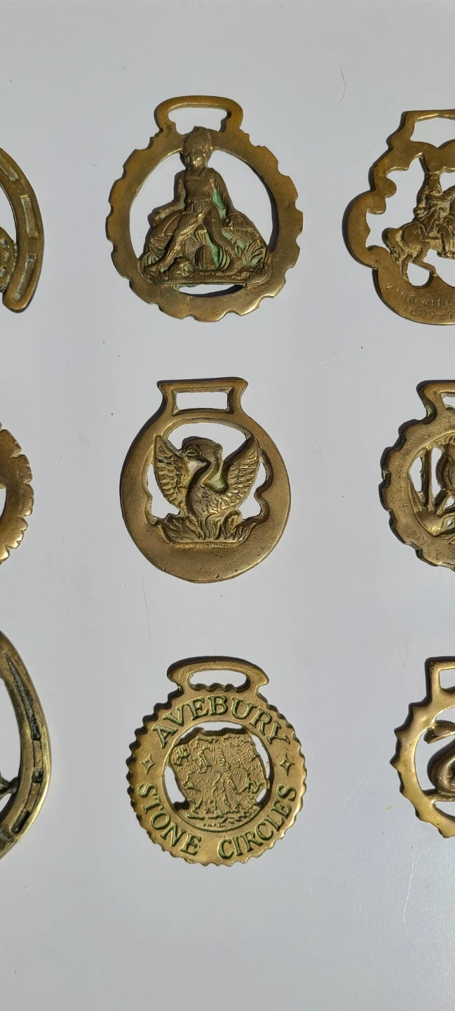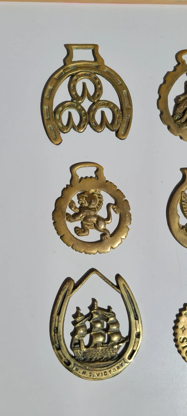 9 Horse Brasses - Vintage / Antique Brass Horse Decorations