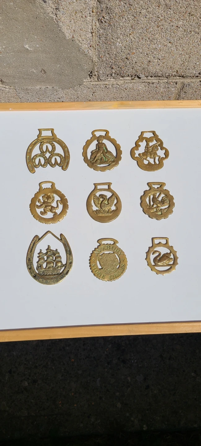 9 Horse Brasses - Vintage / Antique Brass Horse Decorations
