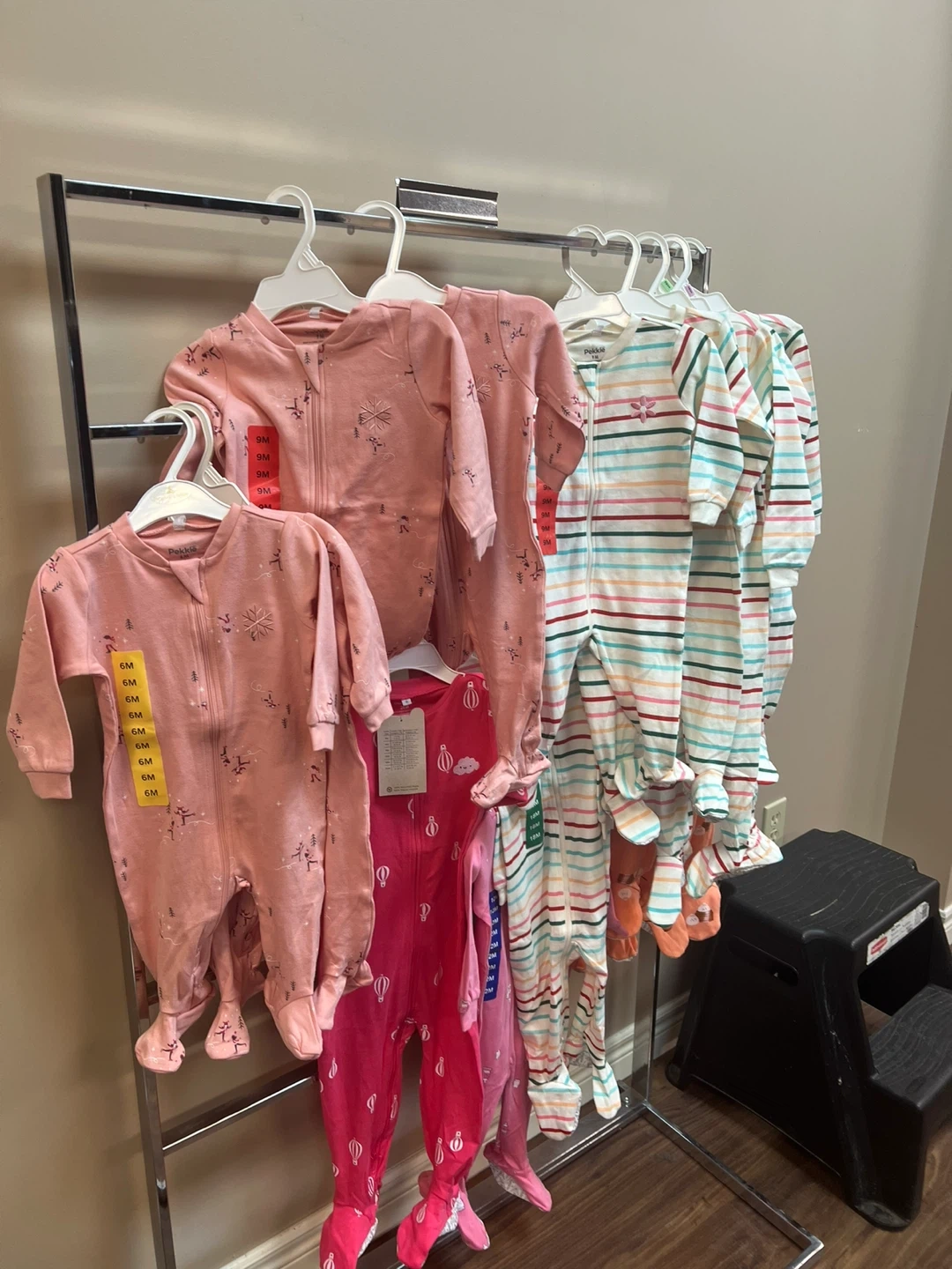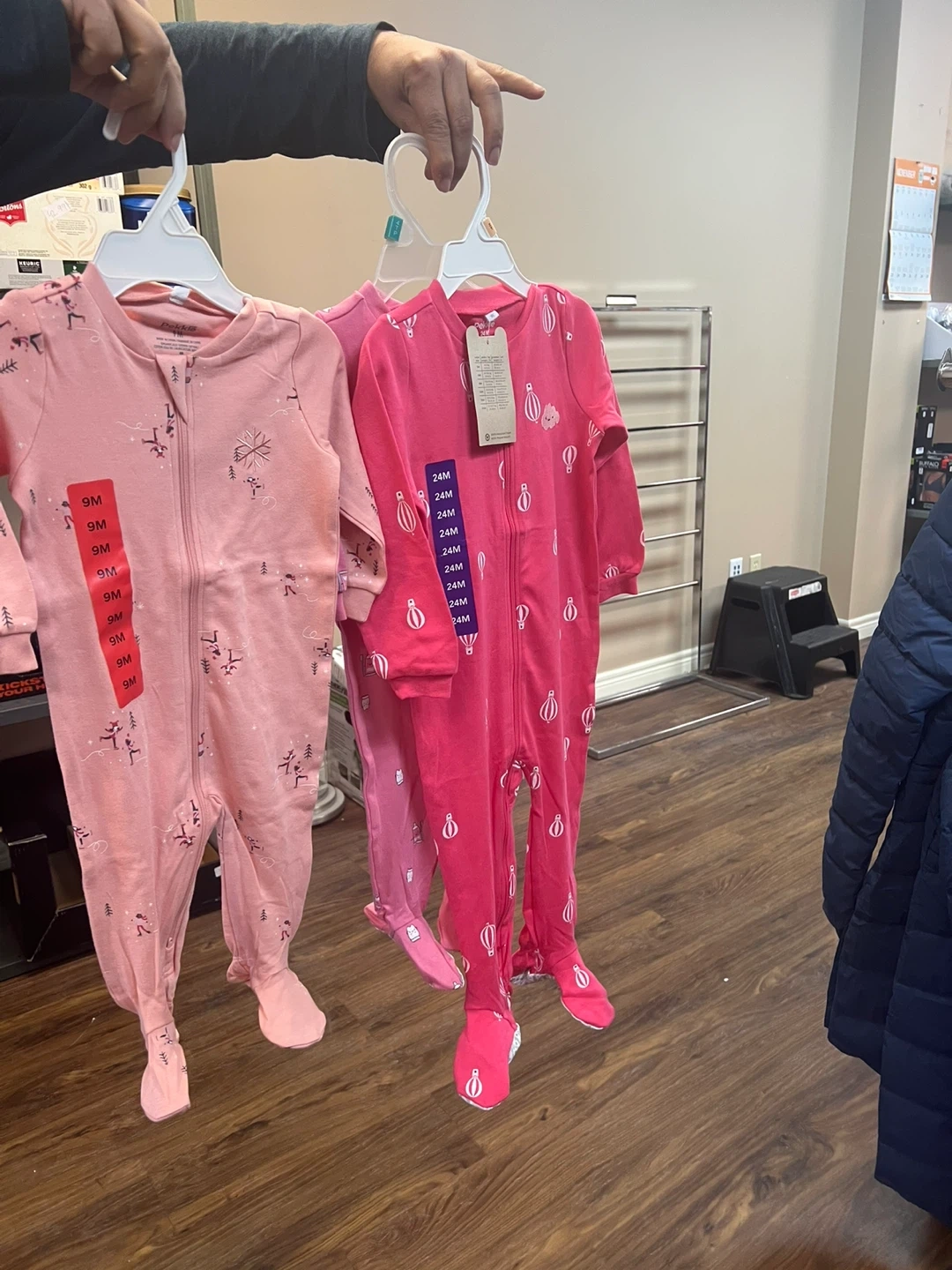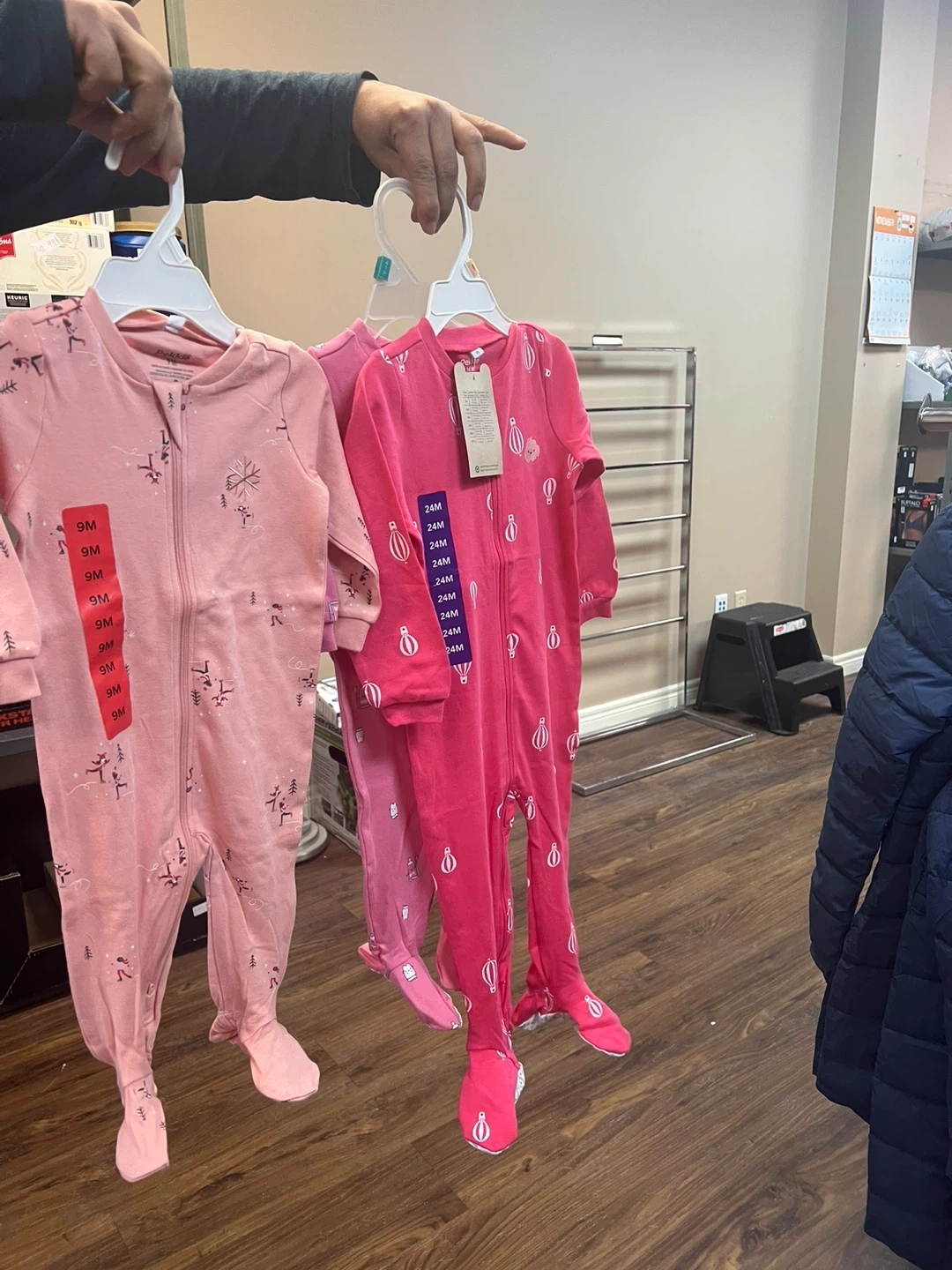 Organically grown cotton adorable baby sleepers from Pekkle. Comes with two pink patterned, two orange sushi print, and one striped sleeper. Perfect for keeping your little one cozy!