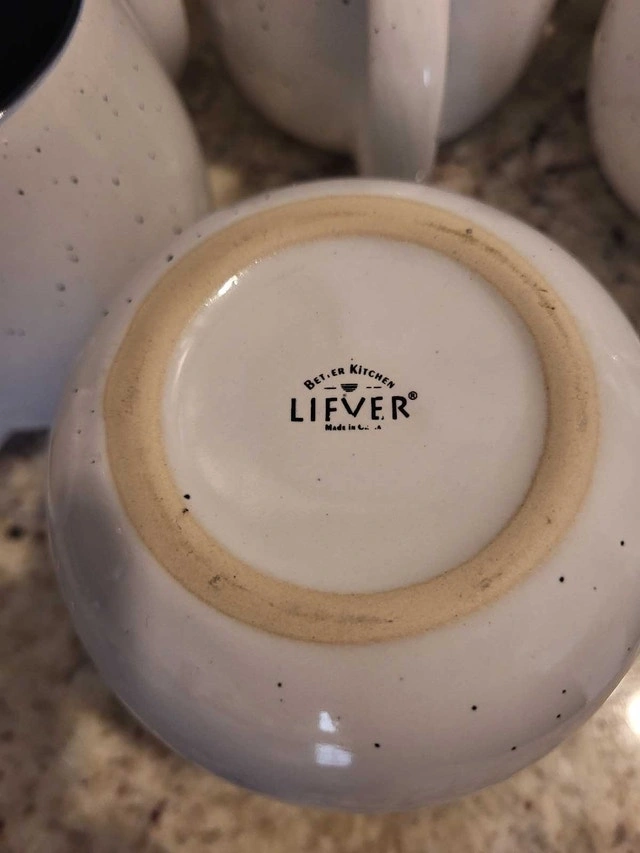 Giving away a beautiful set of 8 LIFVER coffee mugs, perfect for adding a pop of colour to your morning routine! These mugs have barely been used and are in like-new condition. They feature a speckled exterior with a different colour on the inside of each mug. These 16oz mugs are great for coffee, tea, or any beverage you fancy. They also make great soup bowls and can hold a hot drink for longer than other mugs due to their thick walls and narrower top.