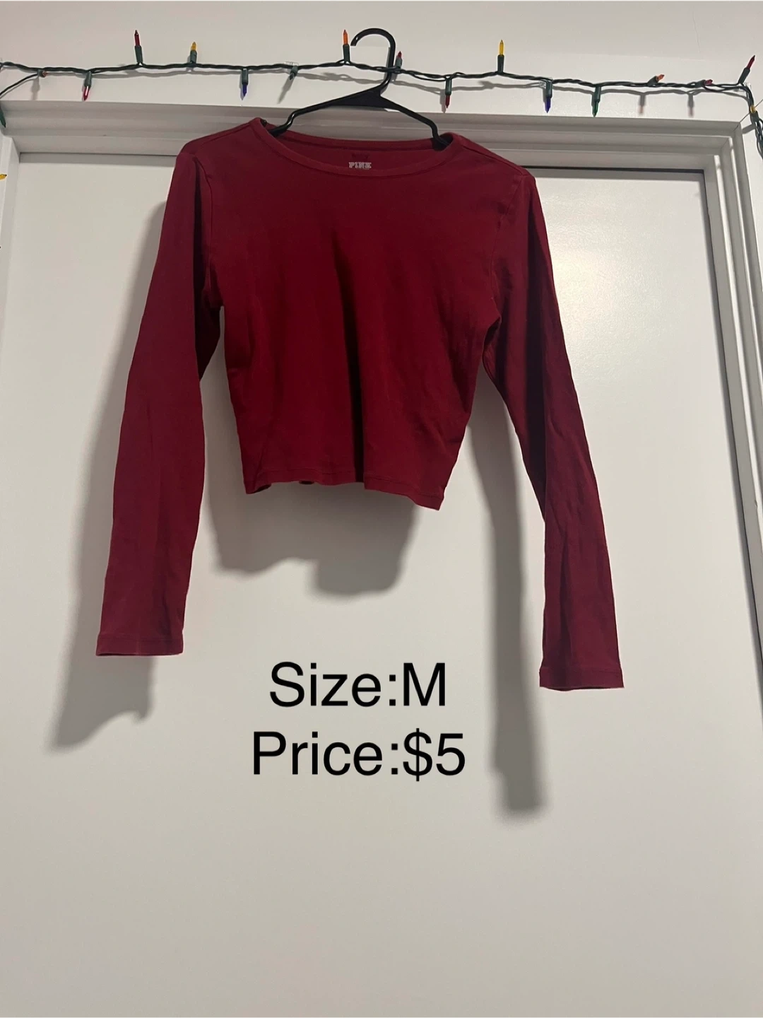 Buy & SellPINK Long Sleeve Crop TopPINK Long Sleeve Crop Top$5Maroon long sleeve crop top. Size is medium. It's a comfortable and versatile piece! Pick up 📍: Jamaica , QueensBrandPINKWHERE TO MEETCheck LocationView MapSELLERKatJamaica584 reviews0 chats·0 favorites·1 viewsSEND CHAT TO SELLERHi Kat! I’m interested in your listing.Hi Kat! I’m interested in your listing.Get the Karrot app to chatSign In to chat
