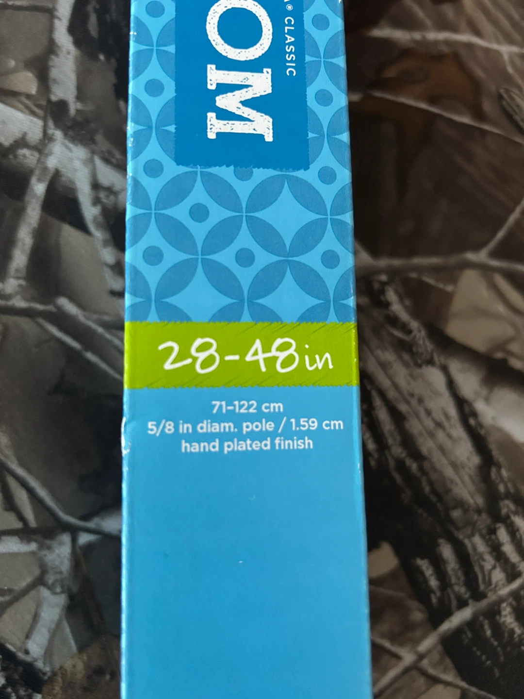 Brand new curtain rod, still in its original packaging! It's white and adjustable from 28 to 48 inches (71-122 cm). Comes with all the necessary hardware for easy installation.