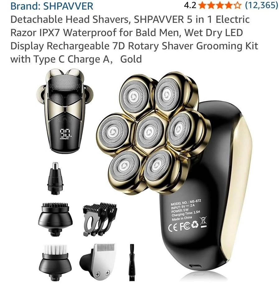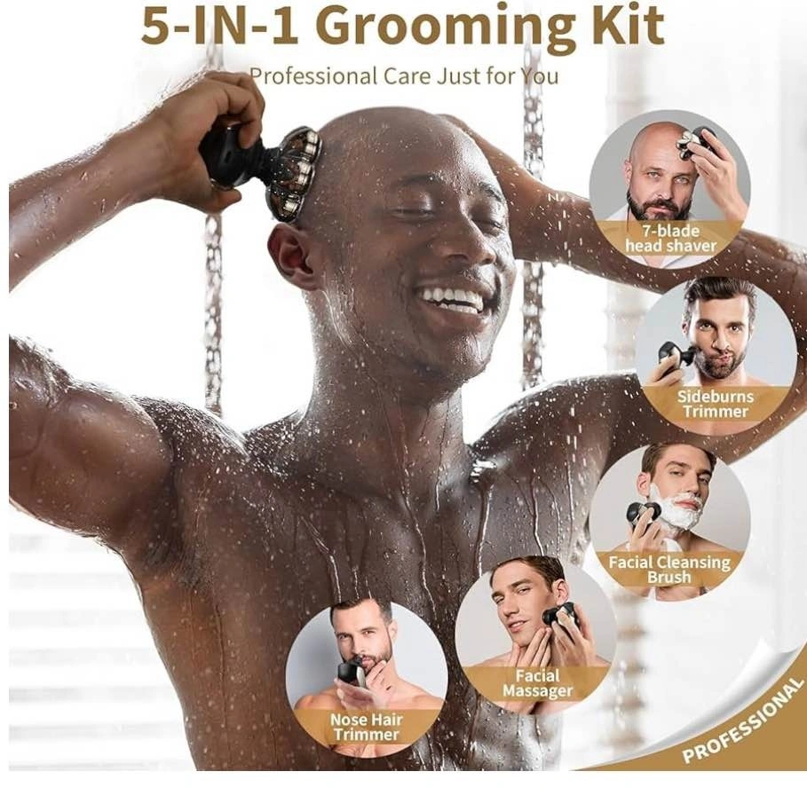 Electric head shaver designed specifically for bald men, providing a smooth, fast, and comfortable shave. Ergonomic design fits perfectly in the hand for easy control. Ideal for daily head shaving at home or on the go. Cordless and rechargeable for convenience, making it great for travel. Suitable for head and facial hair grooming.