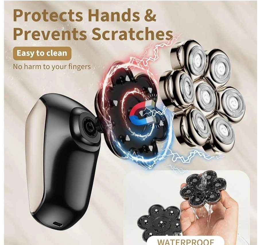 Electric head shaver designed specifically for bald men, providing a smooth, fast, and comfortable shave. Ergonomic design fits perfectly in the hand for easy control. Ideal for daily head shaving at home or on the go. Cordless and rechargeable for convenience, making it great for travel. Suitable for head and facial hair grooming.