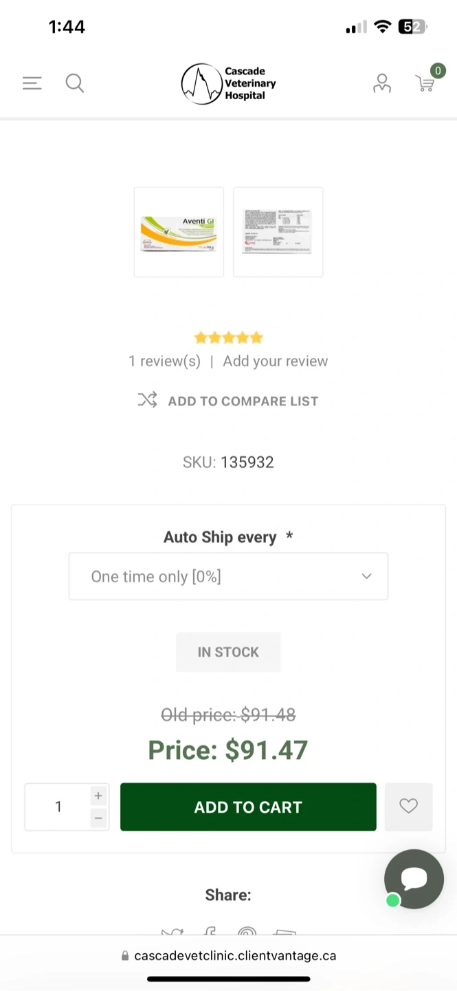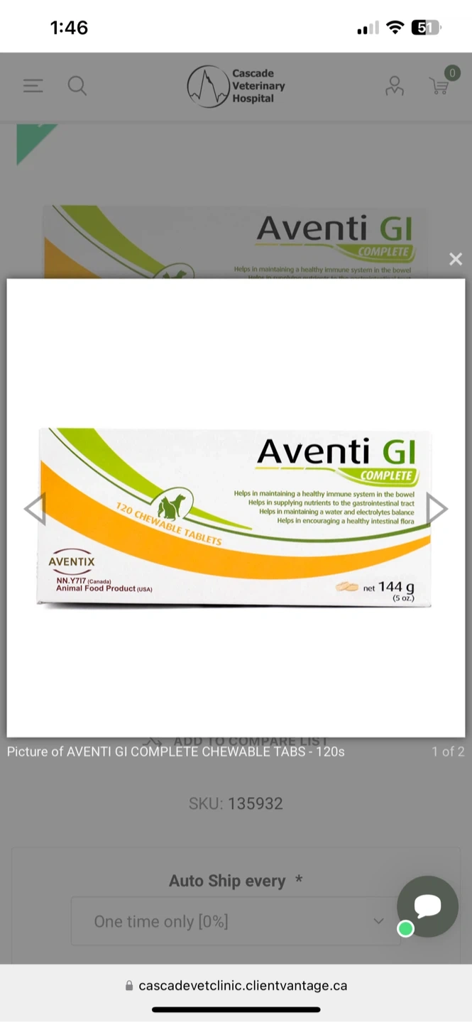 Buy & SellAventi GI Complete Chewable TabletsAventi GI Complete Chewable Tablets$20Aventi GI Complete tablets for dogs. Retails for $92. 37/120 tablets left of this pack. $20 OBOConditionGoodWHERE TO MEETCheck LocationView MapSELLERverifiedBrittneySouth Lethbridge1183 reviews0 chats·0 favorites·8 viewsSEND CHAT TO SELLERHi Brittney! I’m interested in your listing.Hi Brittney! I’m interested in your listing.Get the Karrot app to chatSign In to chat