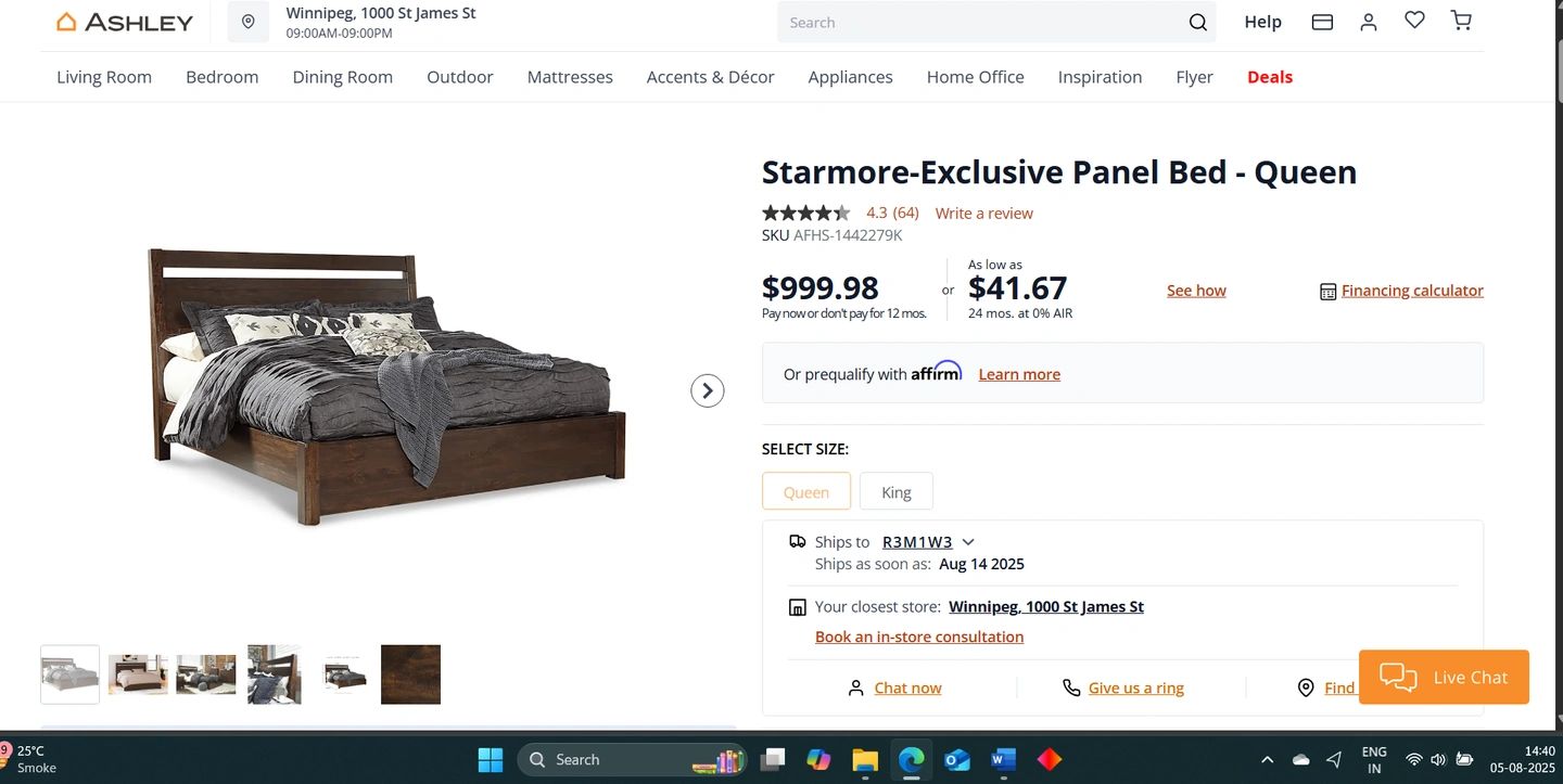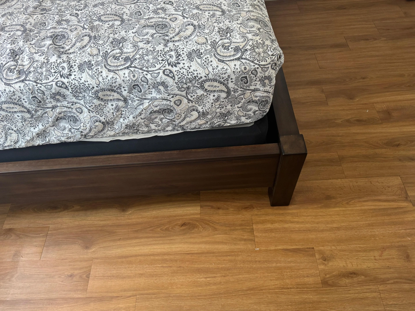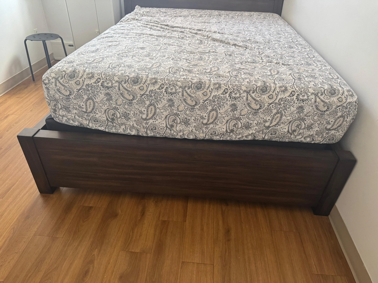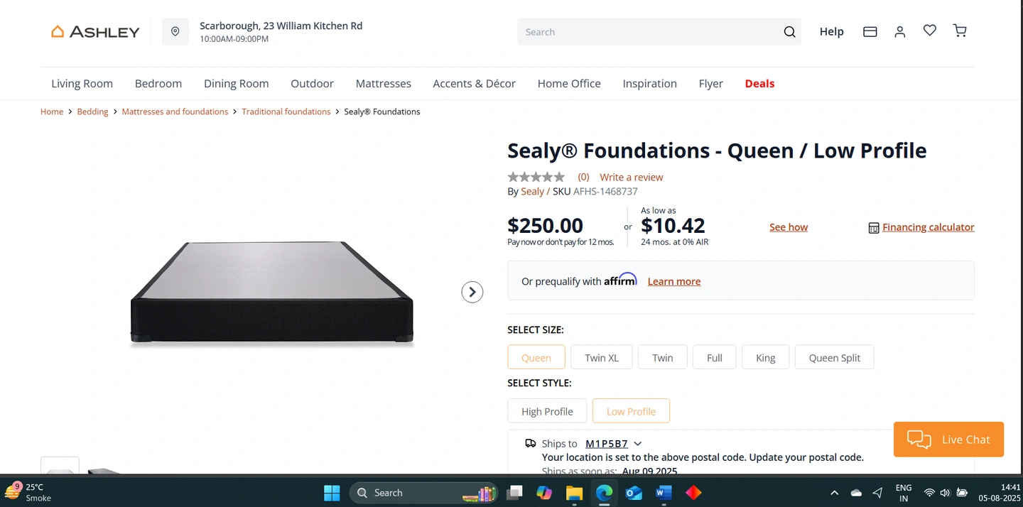Ashley queen bed frame with low profile foundation.