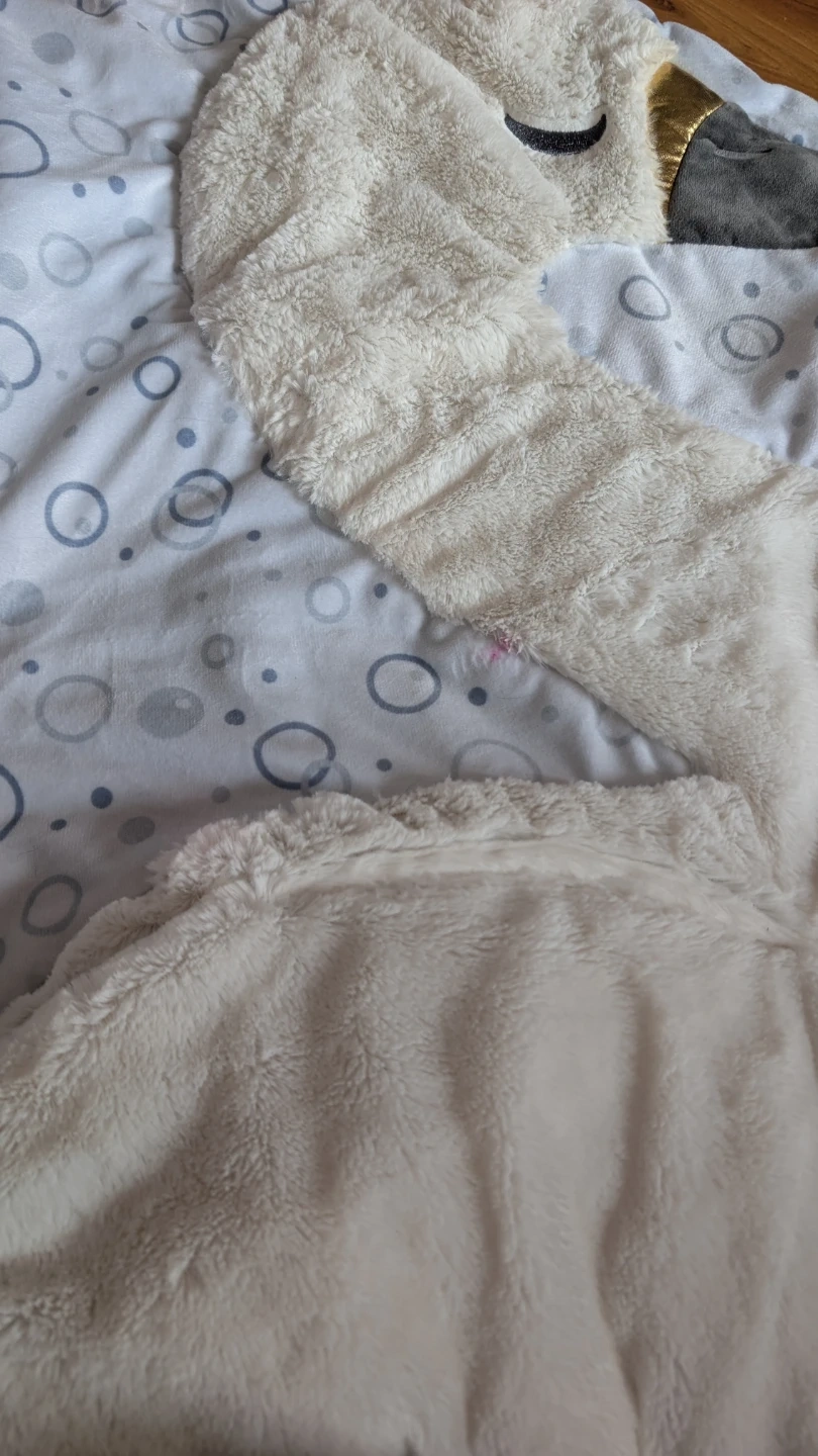 Soft, comfortable playmat for baby in a cute swan design. Includes milestone cards to capture picture-perfect memories. It's great for tummy time and play. Some of the cards have wear around the edges because they went through the washing machine by accident